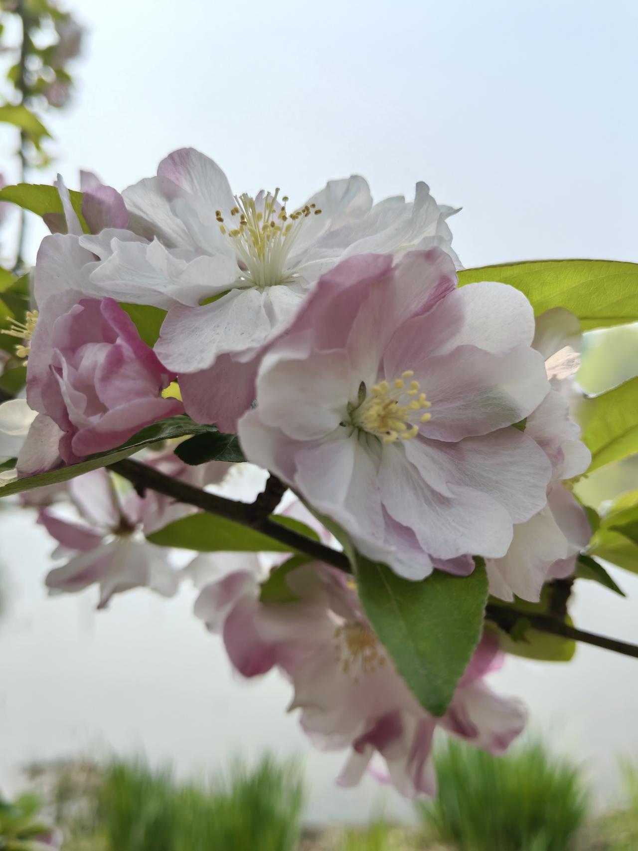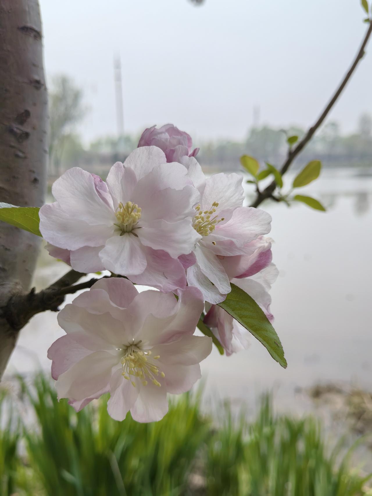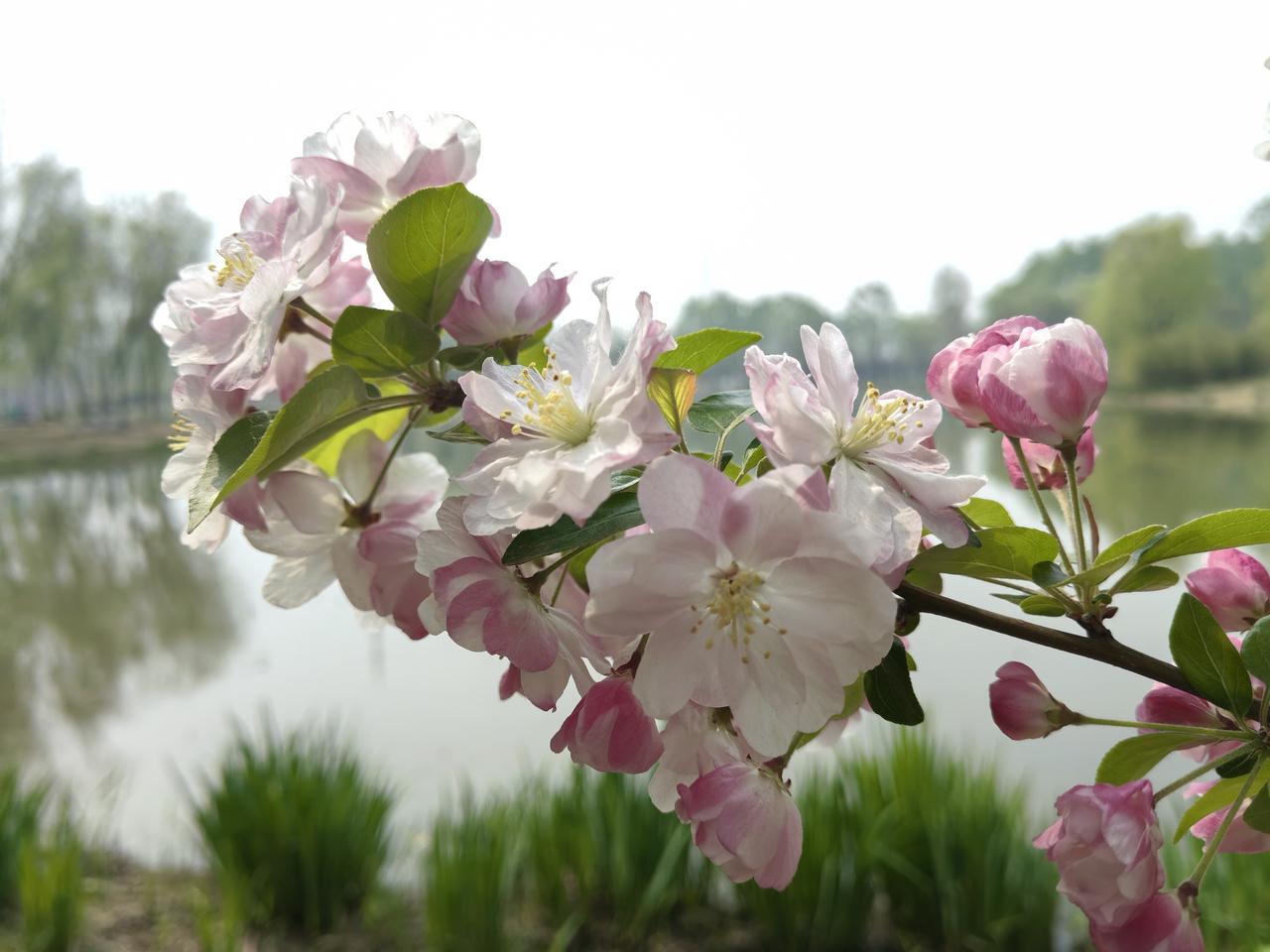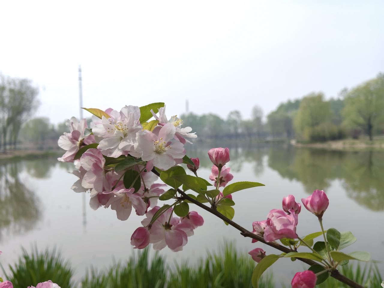 湖边的西府海棠 当你站在湖边欣赏海棠花时是什么感觉? 站在湖边看海棠,仿佛时间都慢了。湖水映着花的倒影,风一吹,花瓣轻颤,像在和湖水说着悄悄话。那份宁静里,花是静的,水是动的,心也跟着沉下来,连呼吸都怕惊扰了这份岁月静好。