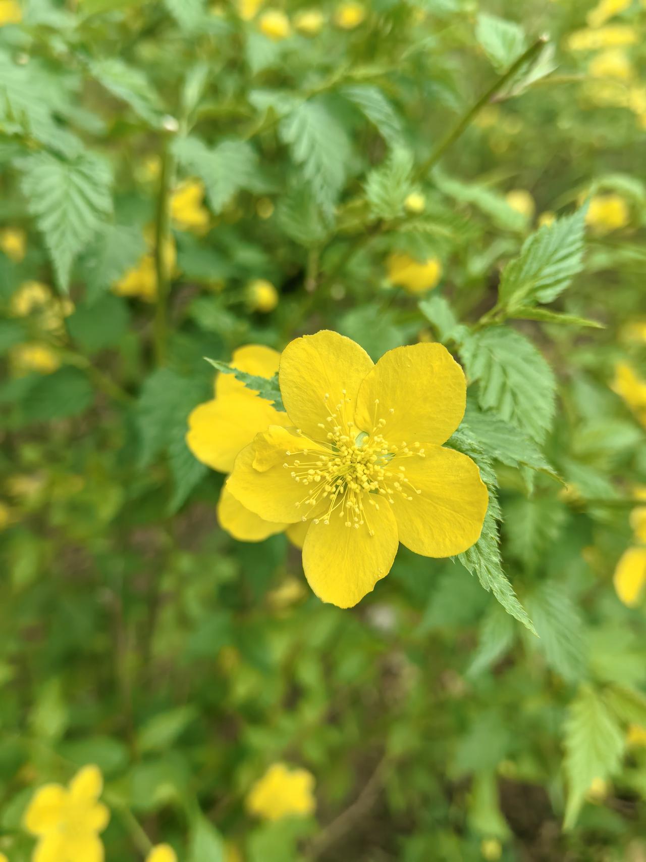 棣棠花,又叫黄榆梅,有单瓣和重瓣之分,单瓣花萼筒扁平,裂成五片,萼片卵状椭圆形。