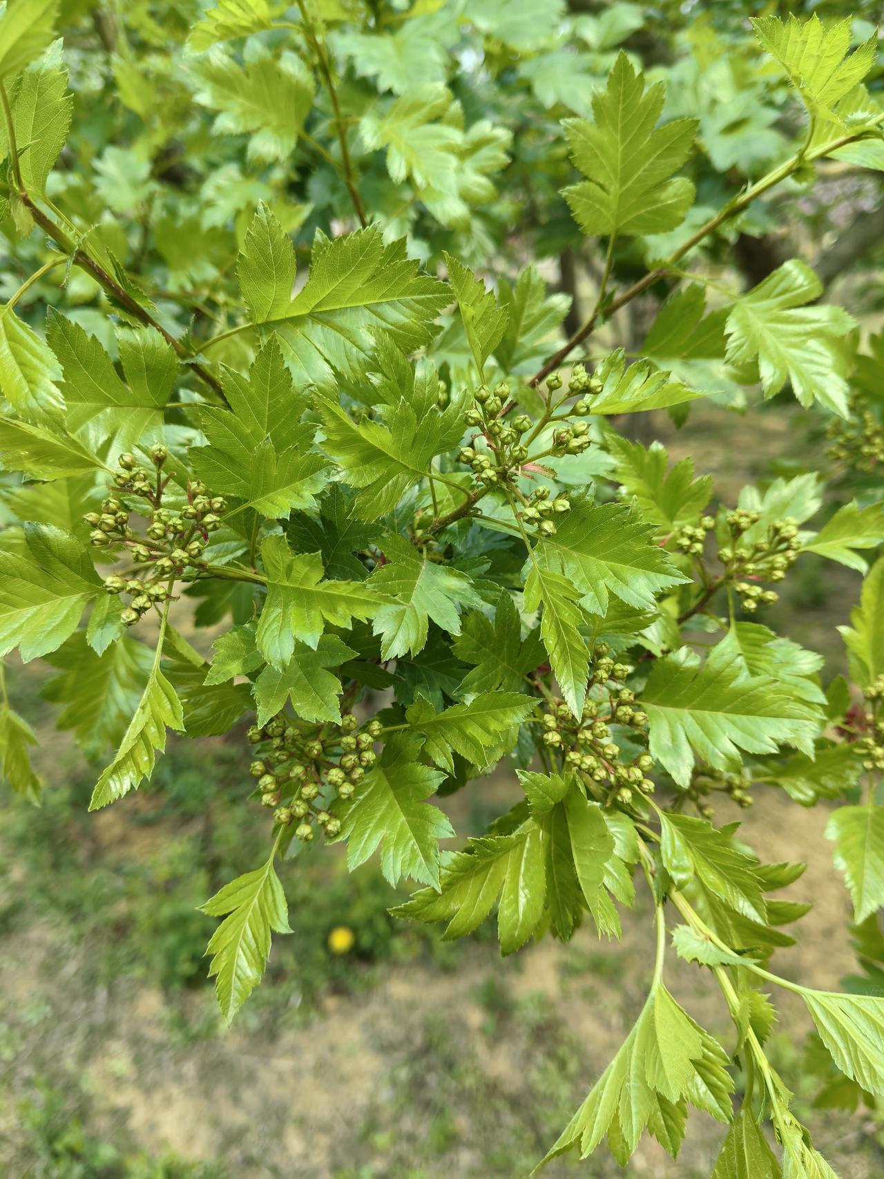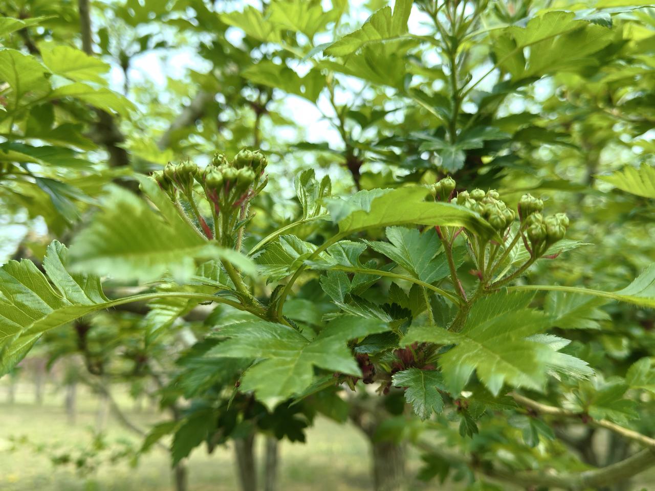 山楂树 当我走在湿地公园山楂树下的时候,虽然没有开花但被山楂树叶所吸引。 山楂树