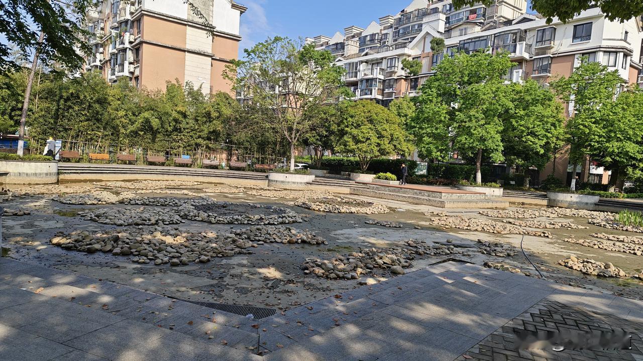 今早路过小区湖边,撞见物业正在放空湖水,准备清塘换水。