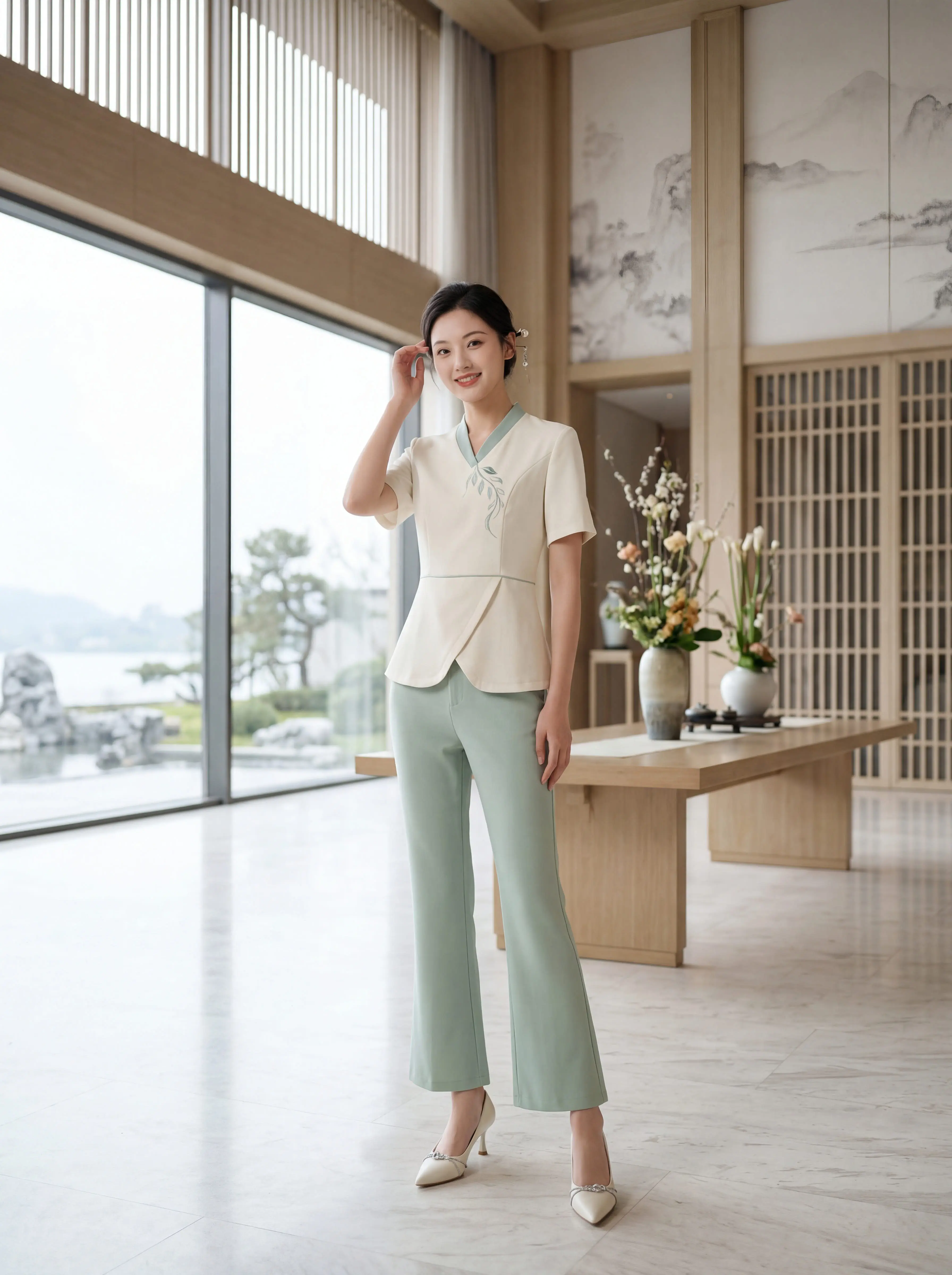 还在为老气工服发愁?这款新中式套装闭眼入。告别松垮 “病号服”,收腰版...