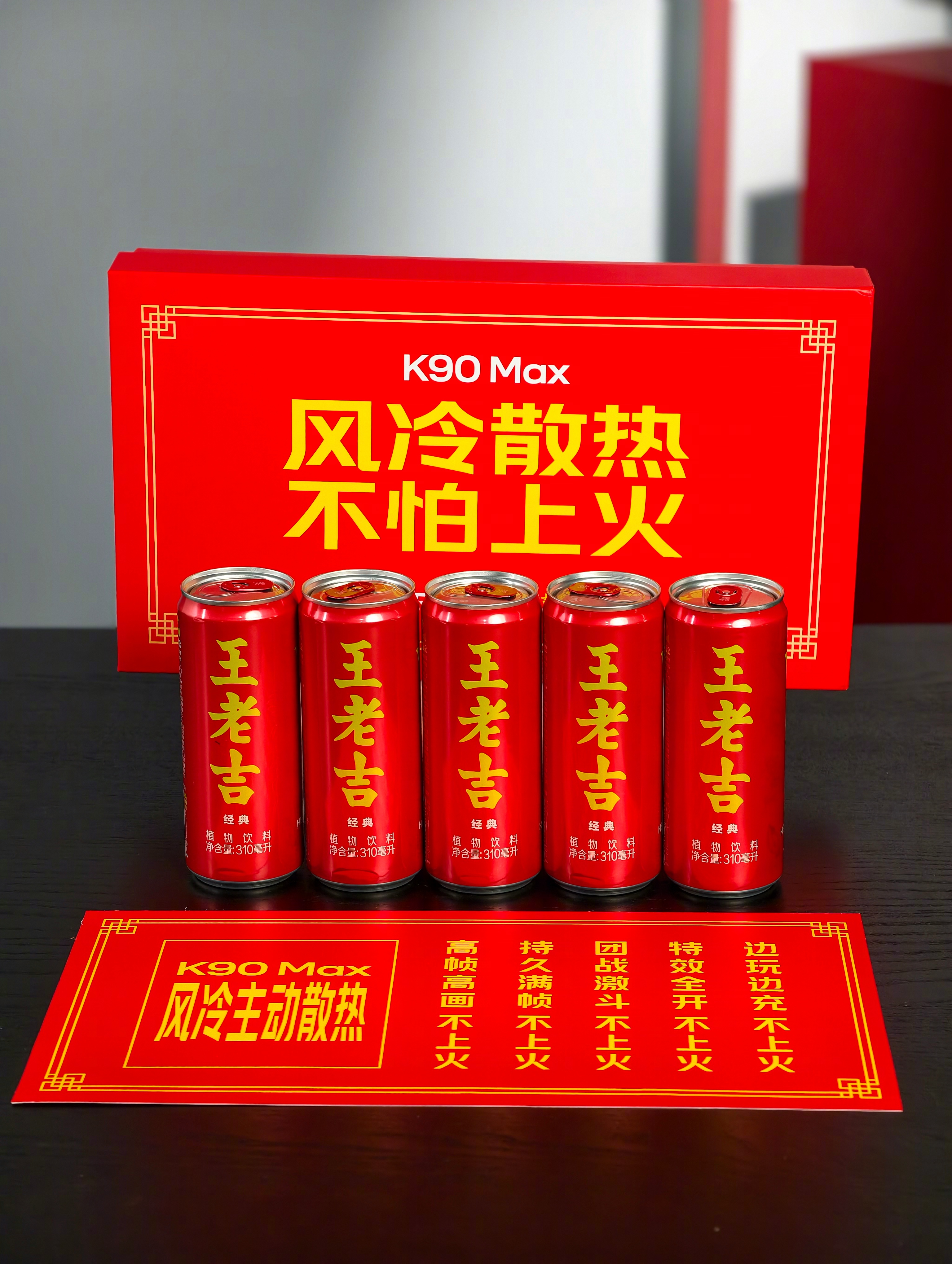 收到了红米 K90 Max X 王老吉的联名礼盒,这俩放一起还挺有意思;一个风冷散热,一个凉茶降火,莫名搭。