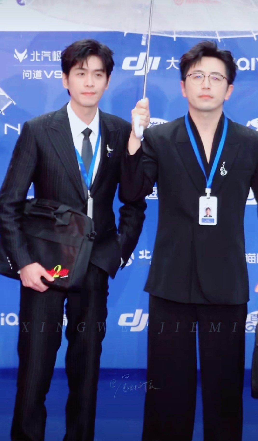 白客给张若昀打伞 张若昀挑眉真的太酷啦,全场都在尖叫,状态真的鲨疯了!他这身穿搭是不是就是戏内的穿搭阿,简直就是职场人阿!已经迫不及待想看《年会不能停2》了,坐等上映!