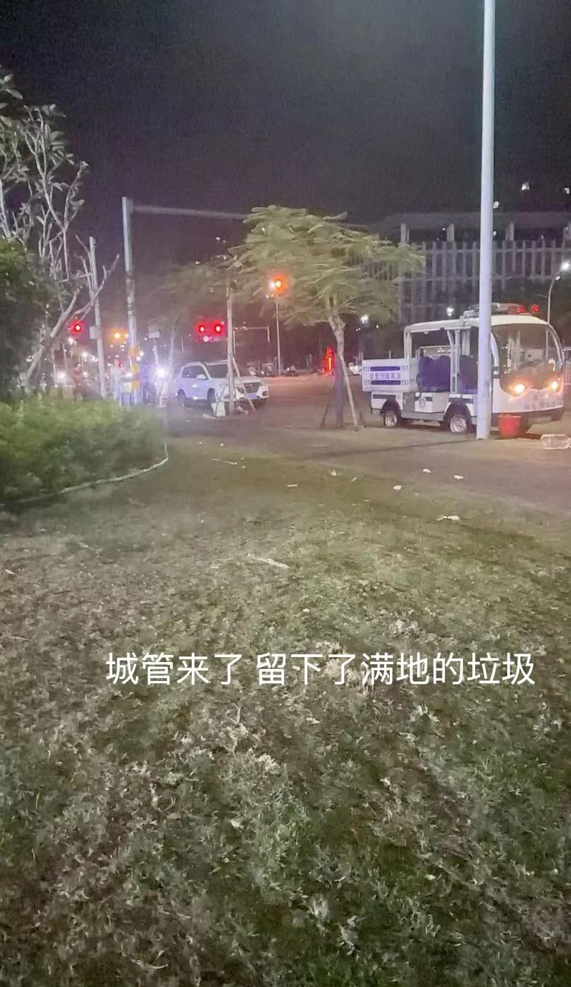 昨晚城管来了 摊贩走了之后又留下了满地的垃圾