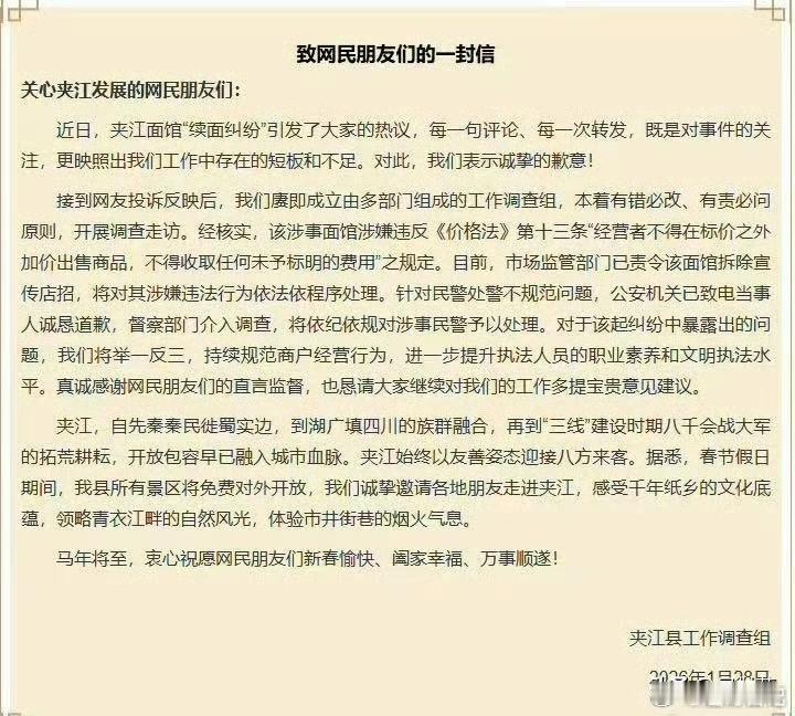 乐山夹江免费续面事件本来也就是随便看到,点进去发现评论区各种地域黑各种地方说法。首先说明,我所说的仅代表我个人,不会动辄我们四川或我们东北,我是安徽人在四川。其次,官方盖棺定论,商家违反《价格法》第十三条"经营者不得在标价之外加价出售商品,不得收取任何未予标明的费用"之规定。