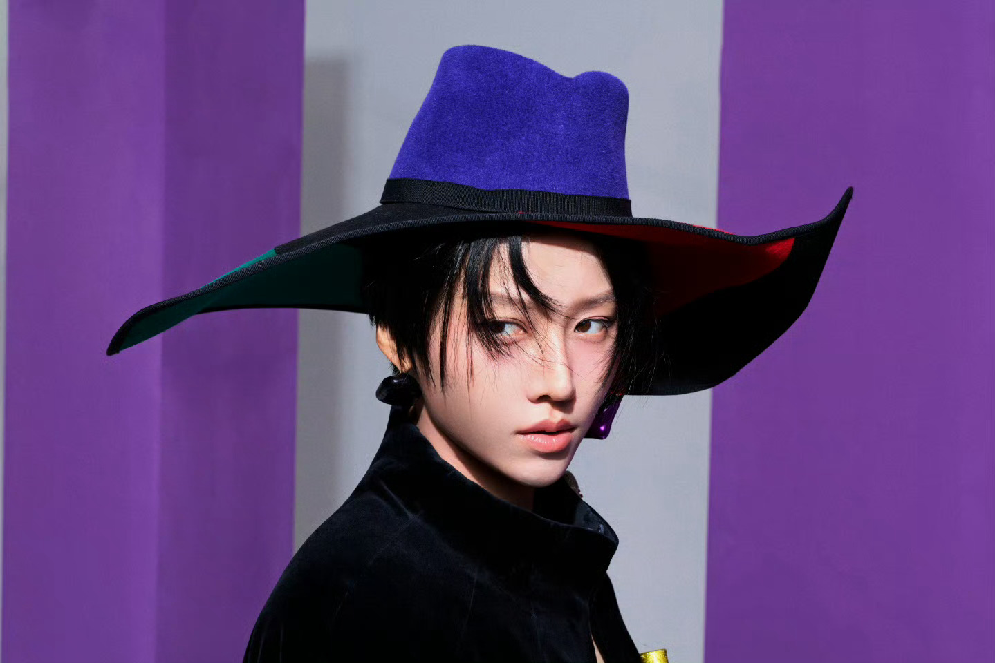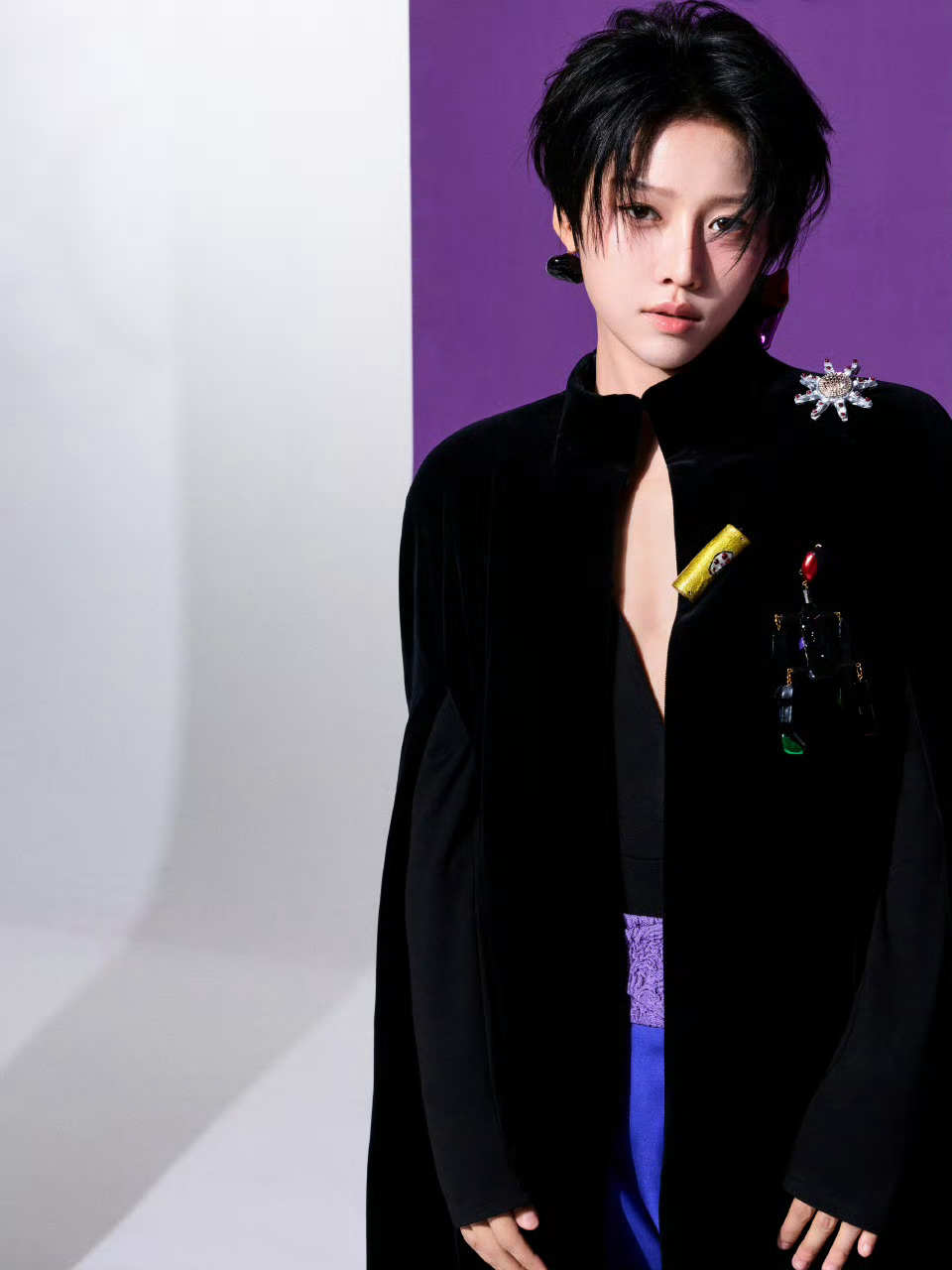 刘雨昕 今日 北京国际电影节 开幕式红毯造型,身着Ronald van der Kemp 2026春夏高定出镜,独特的裁剪廓形,丝绒与紫调撞色,垂坠斗篷与宽檐帽,是她最拿手的刚柔并济的风格。💜🖤💙 北影节红毯时尚灵感解读
