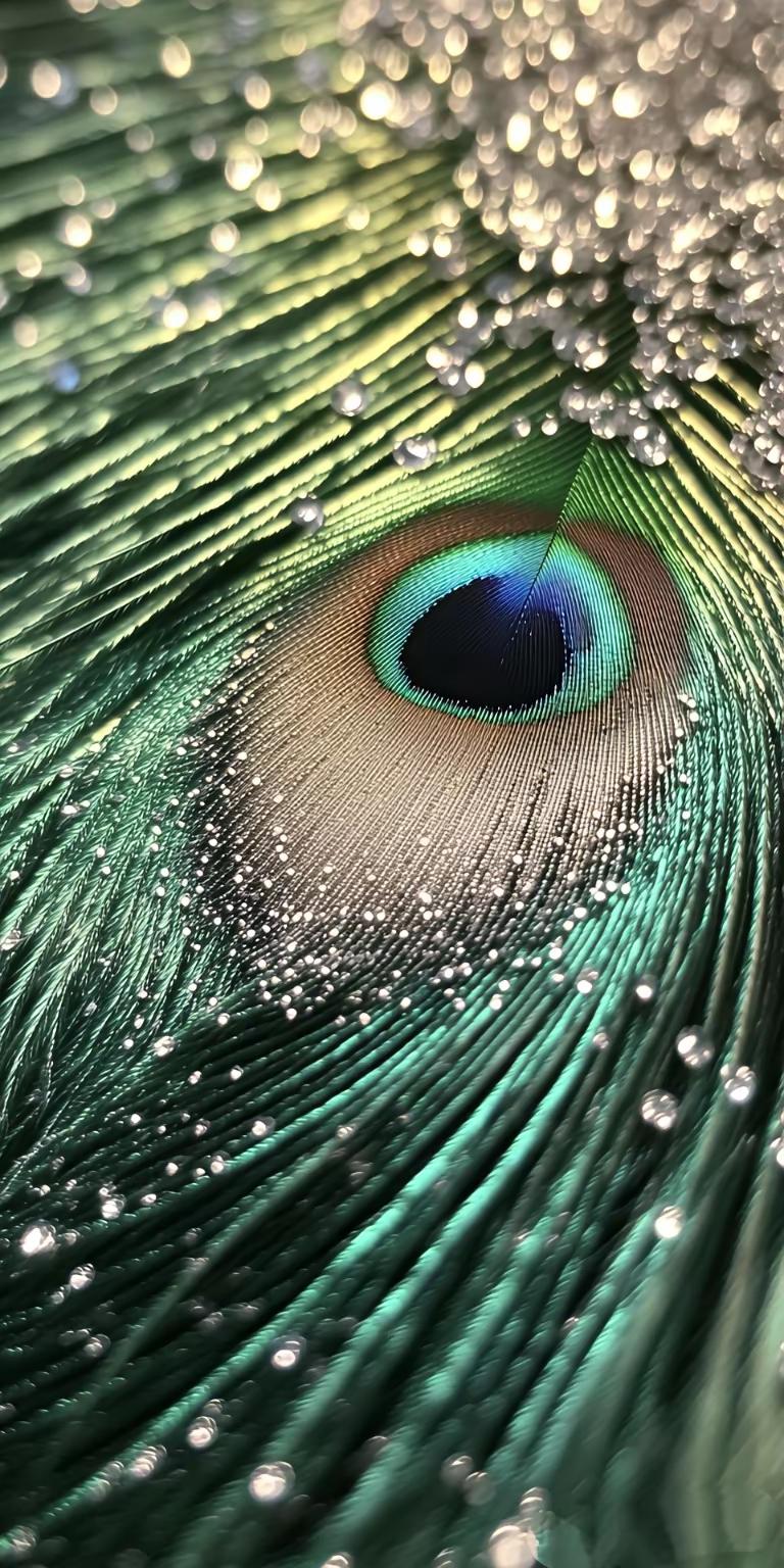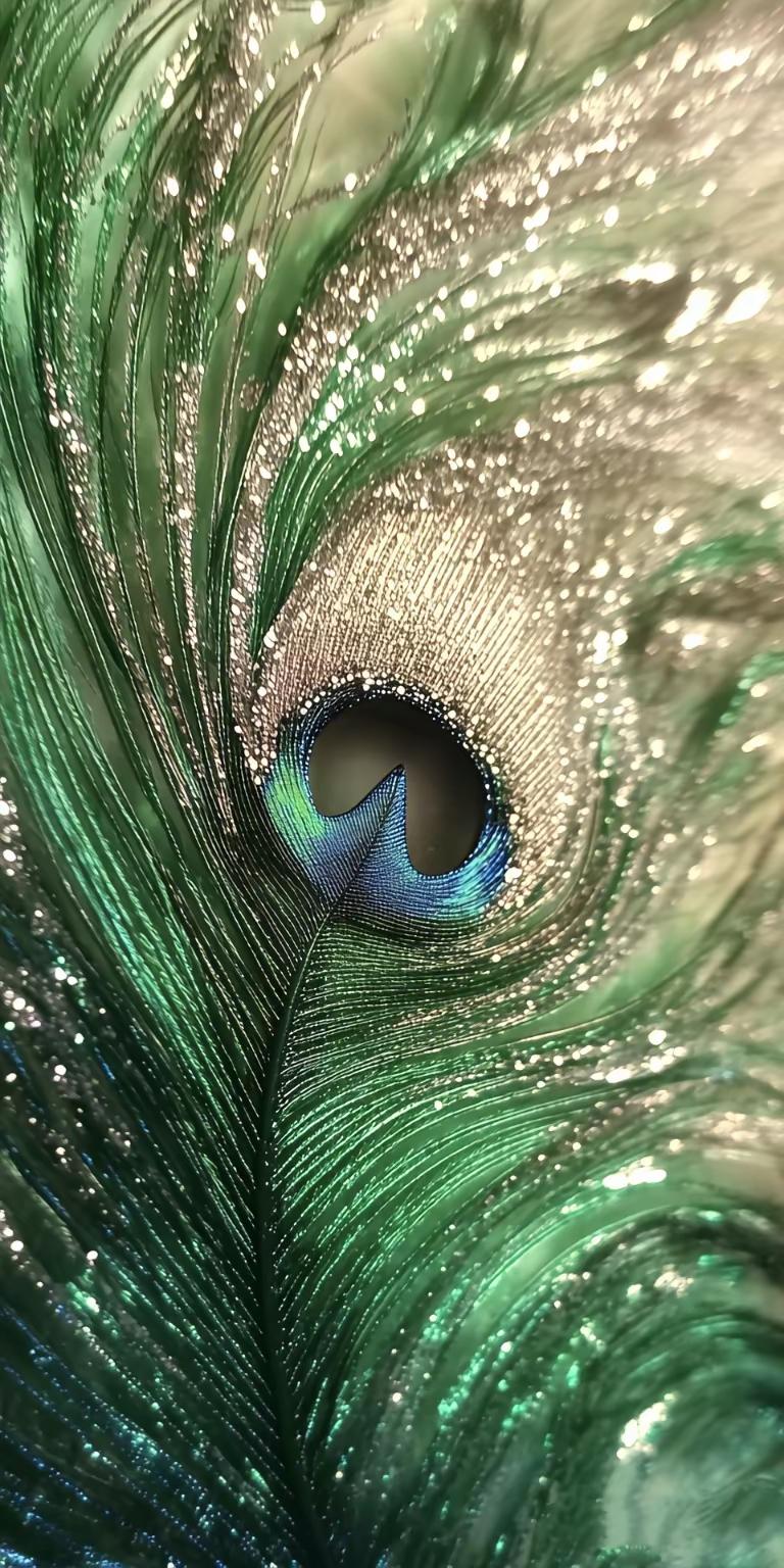 手机壁纸~翠羽流金,光影织就孔雀翎的绮丽诗篇。那一抹幽绿如林间晨雾,眼斑处的蓝紫