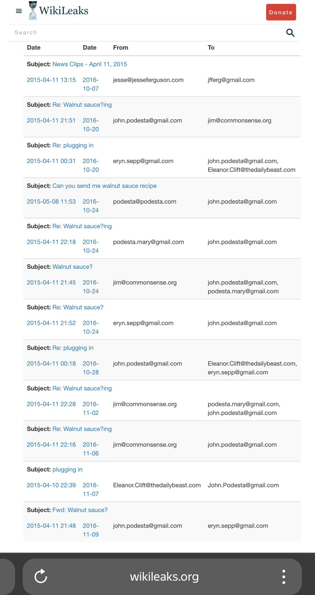 WALNUT SAUCE was mentioned in the PODESTA EMAILS.