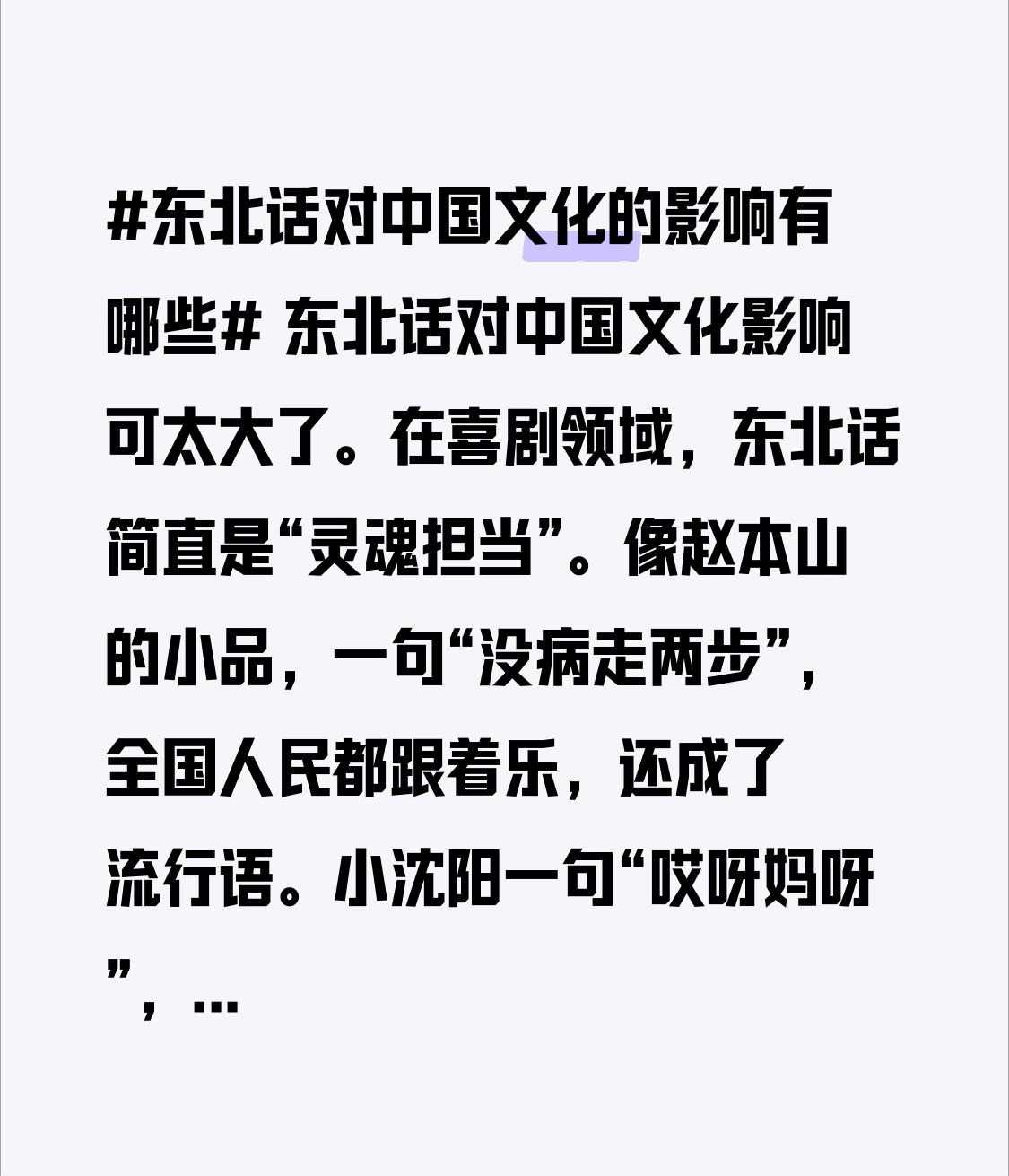 在网络文化里,东北话也相当活跃。“老铁”“忽悠”等词,大家张嘴就来。很多网络段子用东北话表达,瞬间就有了那味儿。而且东北话传播力超强,身边要是有个东北朋友,没过多久,你也会不自觉冒出几句东北腔。东北话就像文化里的“调味剂”,让中国文化更有滋有味。