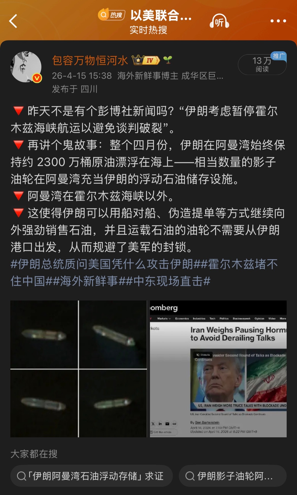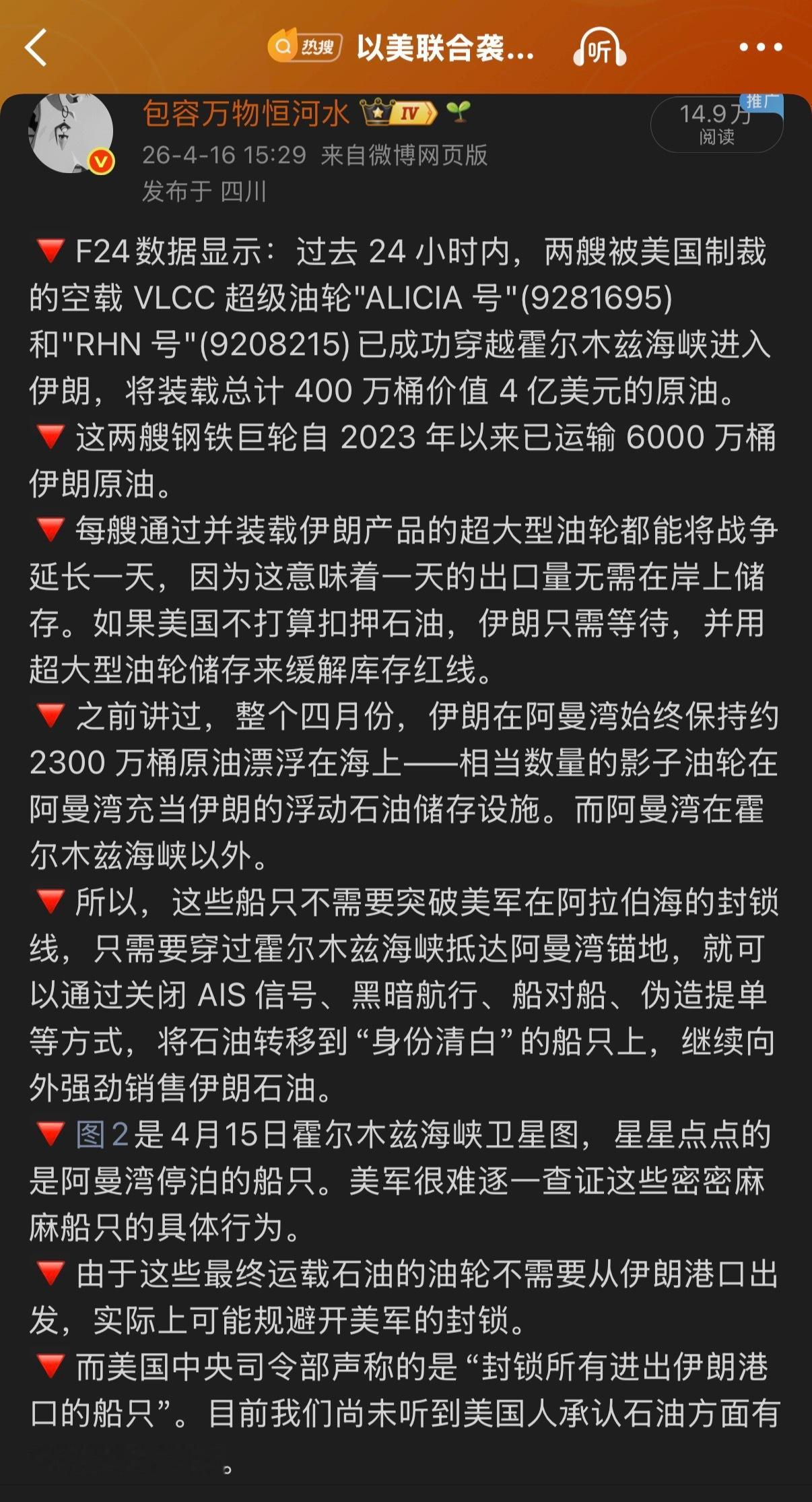 🔻总台报道也提到了伊朗的这点“后手”。伊朗最高领袖威胁击沉美方舰艇伊朗准备好打