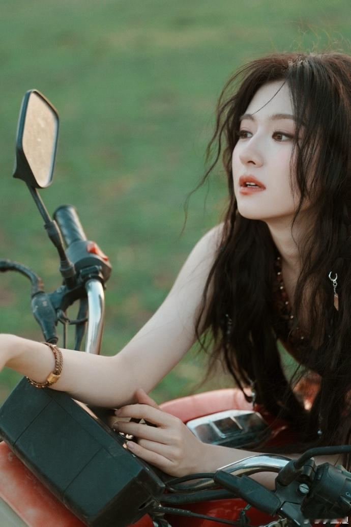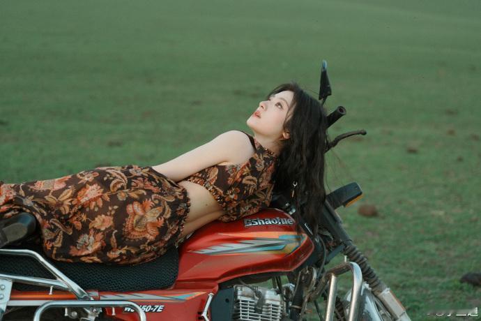 李兰迪李兰迪摩托大片李兰迪摩托后座我来坐 平时看李兰迪都是甜甜软软的,结果这组草原摩托照完全不一样。她就那么随意往红色摩托上一靠,头发被风吹得乱糟糟的,反而特别好看。说不上来那种感觉,就是很自由、很飒。兰迪摩托后座我来坐