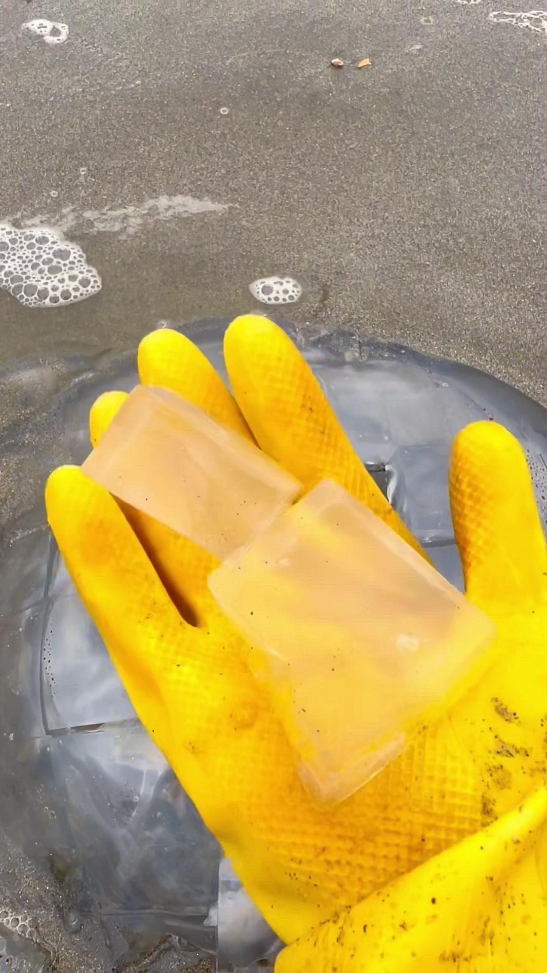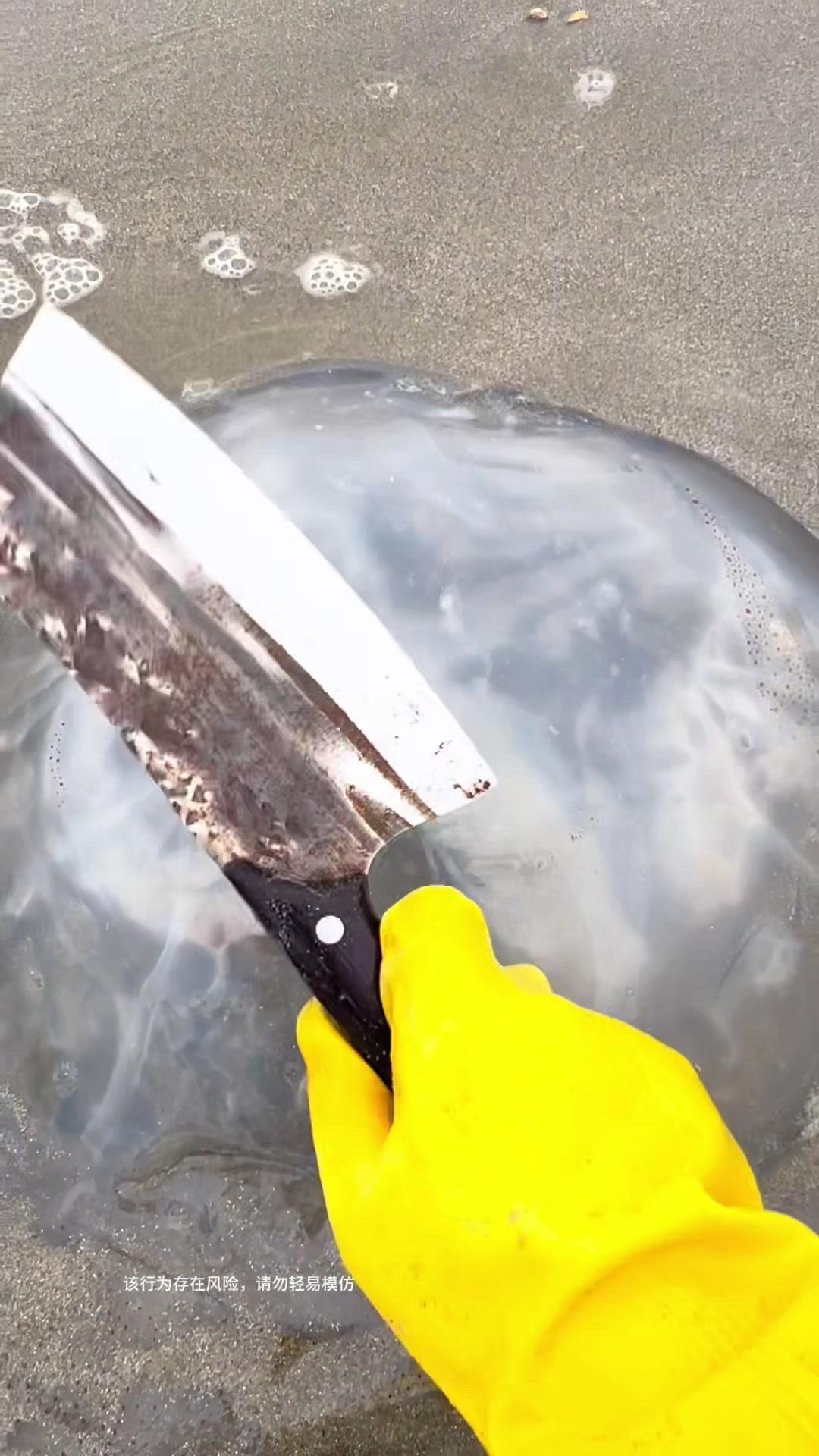 海滩上漂来太多遗落的海蜇,为了不浪费,我们会把它们切成小块扔回海里养鱼。这些是自然馈赠的“海洋礼物”,从捕捞到消化,都要尽力物尽其用。