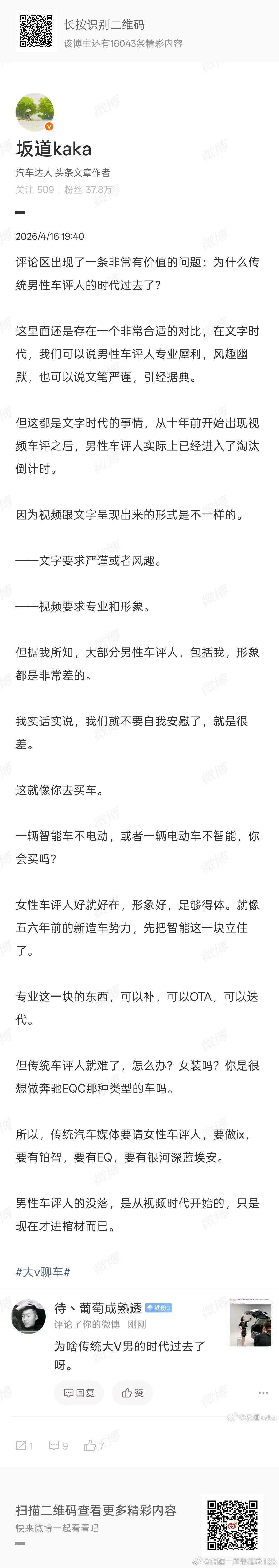 传播终归还是要回归内容的本质,高质量的内容【比如三剑客】,有趣的灵魂【比如小乔】这样的才算是真正能够长久传播下去的更珍贵的东西。毕竟...这年头好看的皮囊太多了,有趣的灵魂才更值得珍惜。大v聊车
