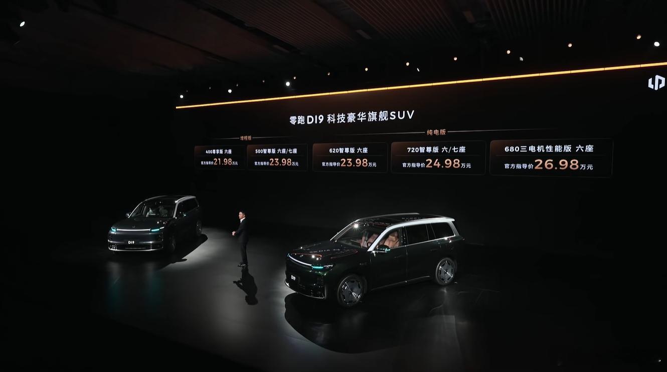 增程版的纯电续航分别为400km和500km,其中500km提供六座/七座选择。纯电版的续航分别为620km、720km和680km,其中720km提供六座/七座选择,而680km版本则配备四驱三电机,零百加速可达3.94s,很适合追求驾驶质感又想要全尺寸SUV体验的用户。