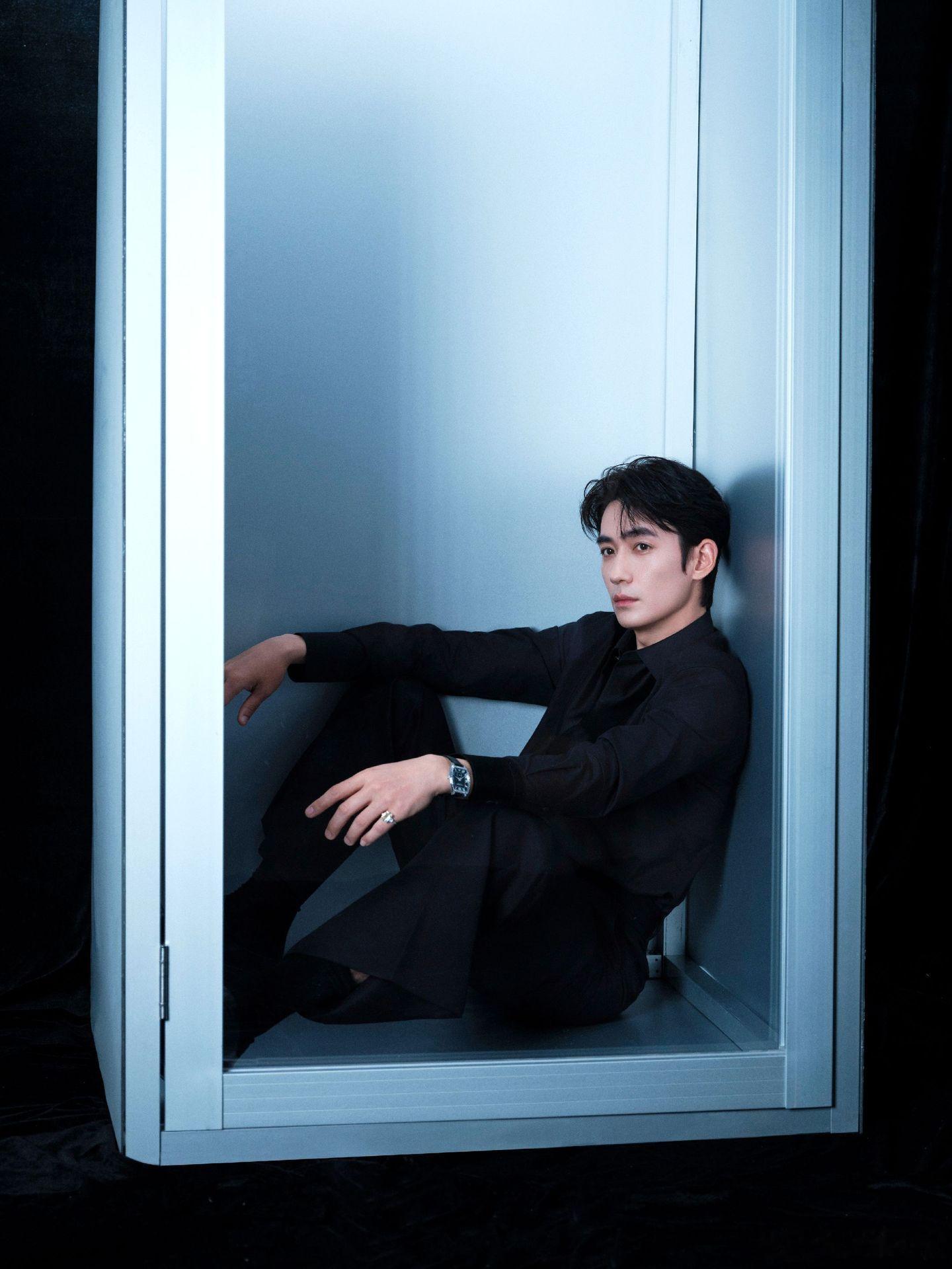 朱一龙 一身黑西装裹挟着沉敛气场,光影落在肩线轮廓间,所有世俗形容词尽数失效。骨