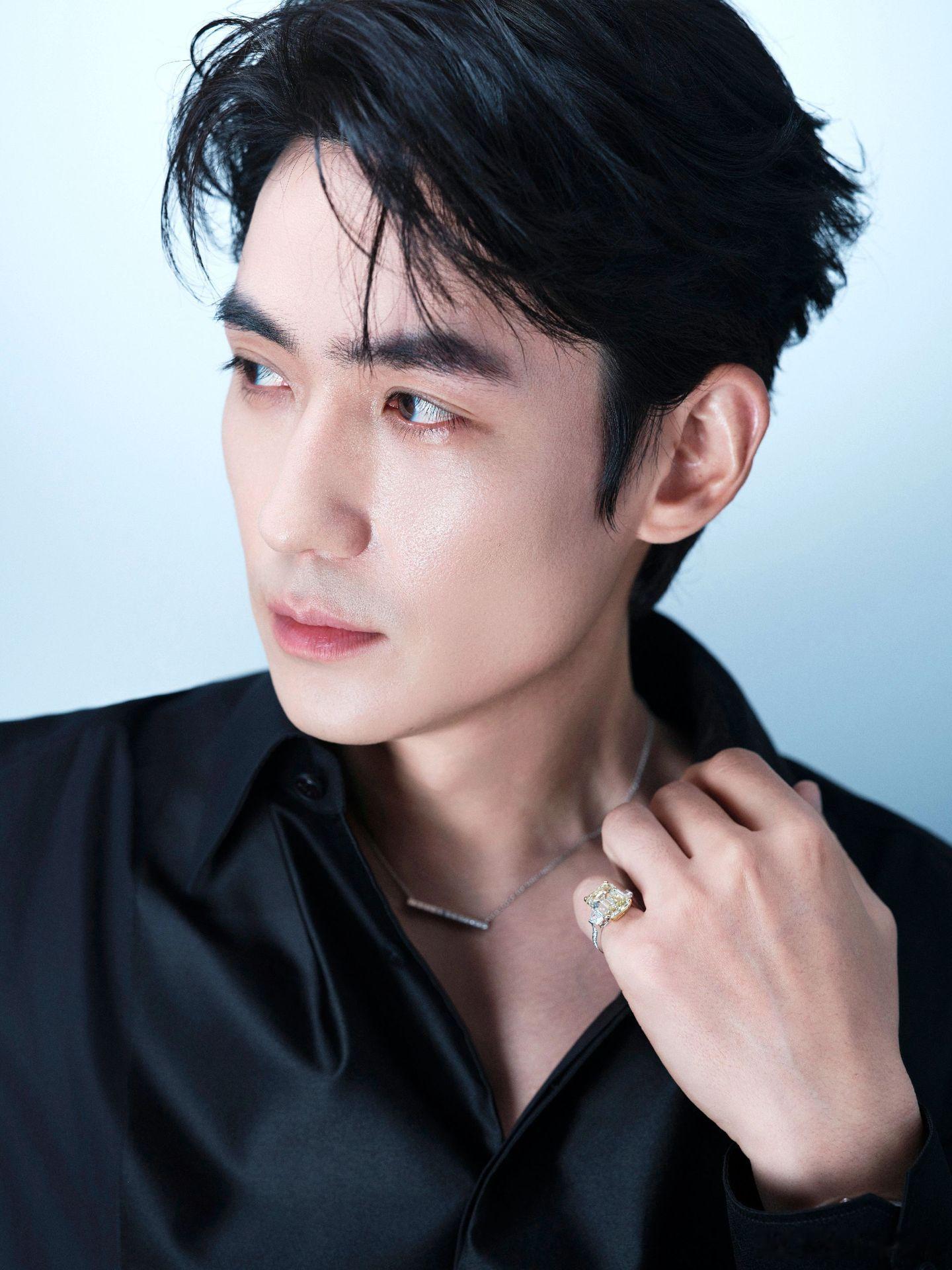 朱一龙 一身黑西装裹挟着沉敛气场,光影落在肩线轮廓间,所有世俗形容词尽数失效。骨相深邃自带疏离美感,周身漫开难以描摹的矜贵雾感,是坠入人间未被惊扰的清冷绝色。