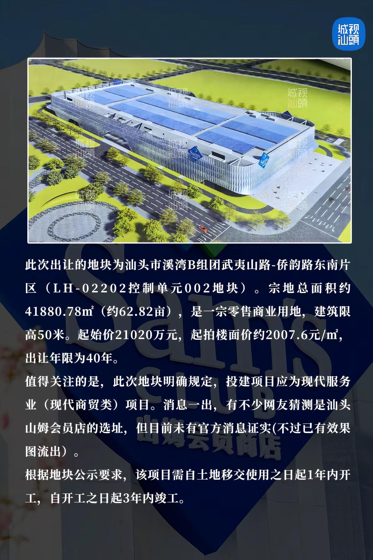 汕头东海岸一地块出让,将建现代服务业项目。4月16日,东海岸新溪片区一宗商用地成功出让(将引进大型连锁品牌会员制超市),竞得者为汕头市投控现代服务管理有限公司。成交总价约21235万元,折合成交楼面价约2028元/㎡。汕头 汕头商业 山姆