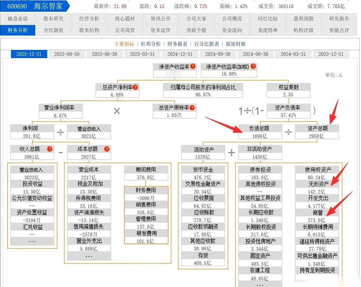 这一千两百多亿的家底里,硬生生塞着两百七十多亿的“商誉”。