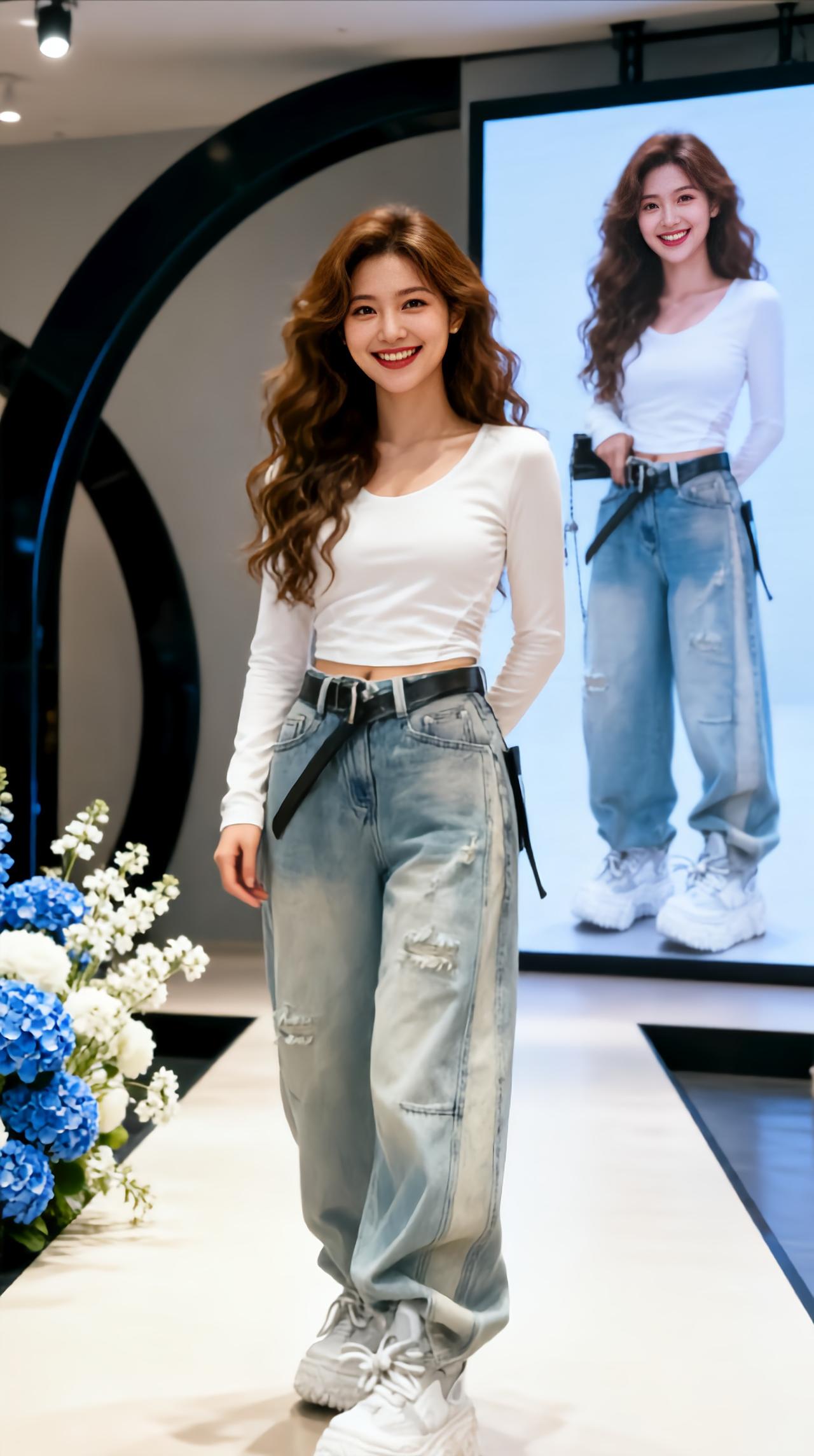 牛仔裤穿搭 秀场 舞台ootd 美到发光 直筒显瘦秀场同款长裤