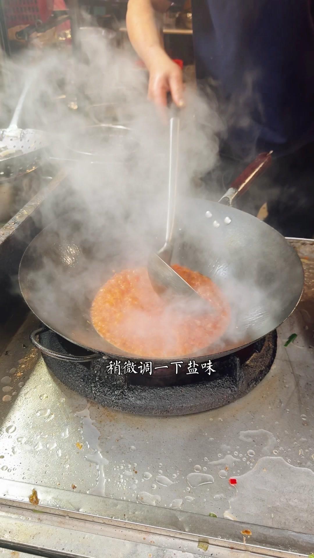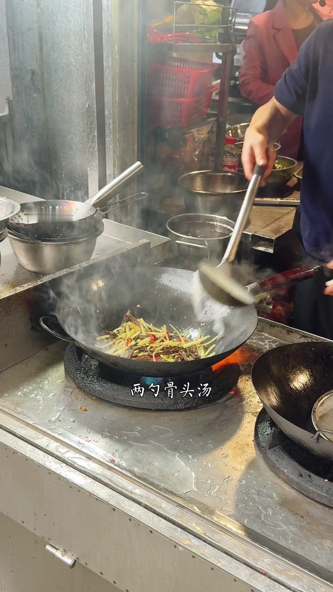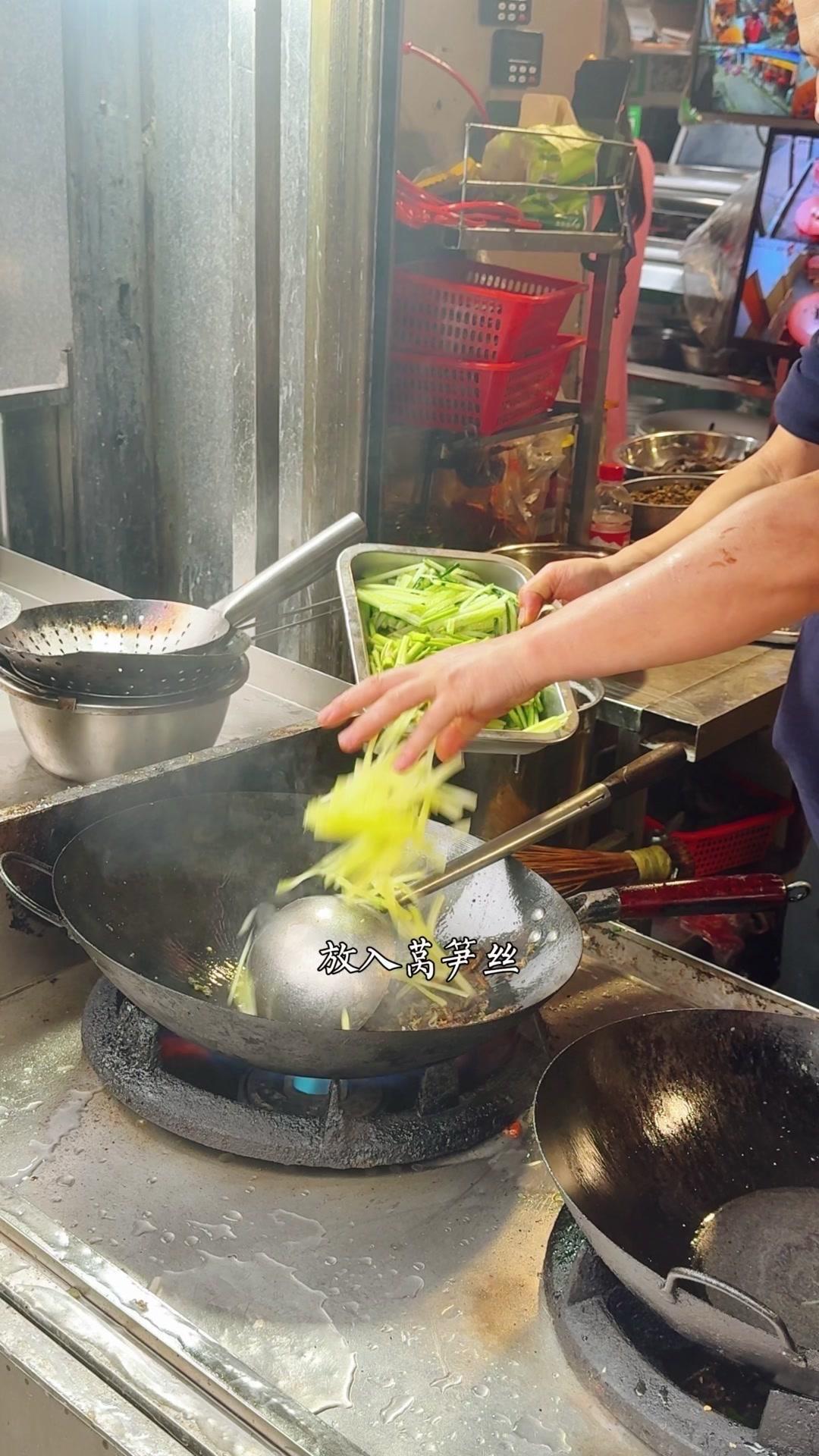 起锅烧猪油,7成油温下空心菜大火翻炒,加蒜子和盐味至变色,倒入少许骨头汤翻炒四五下即可出锅。