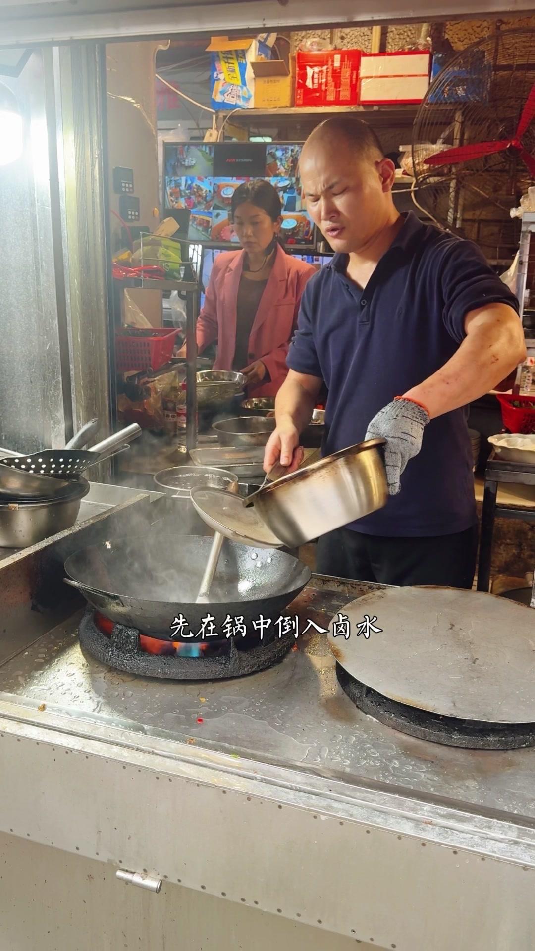 锅中倒入卤水卤毛肚后备用。起锅烧油,放入小米辣、姜蒜米、榨菜丝炒香,加毛肚汤、盐、蚝油、胡椒粉,喷入葱头,倒入毛肚翻炒两下,捞出盖在香菜和葱段上。