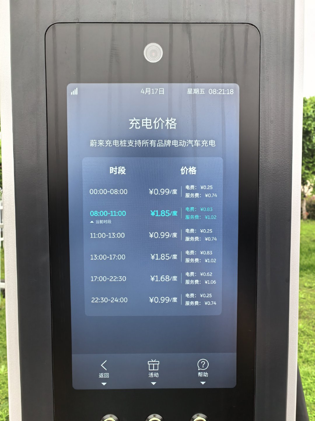 不得不说 NIO Power 是真的很牛放在室外的充电桩都是非常有质感的屏幕虽然