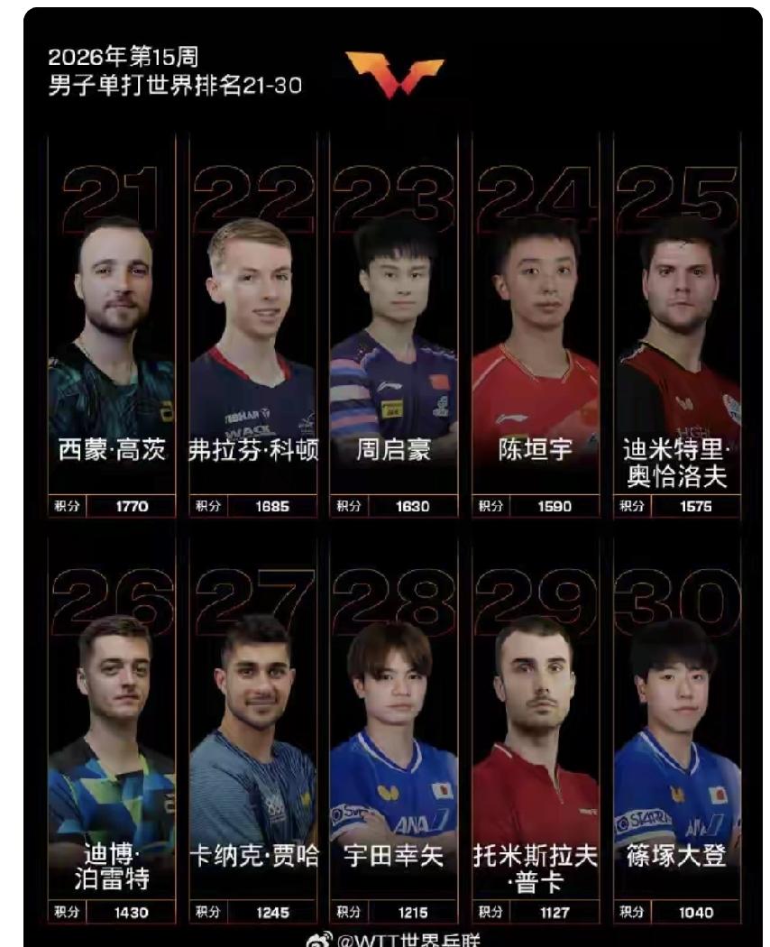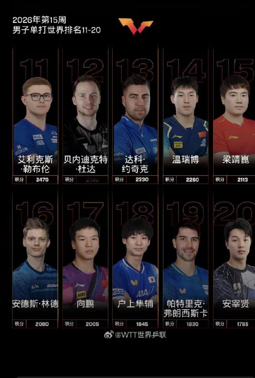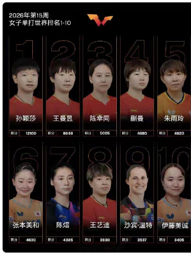 国乒继续领跑:国际乒联2026年最新世界排名出炉!
