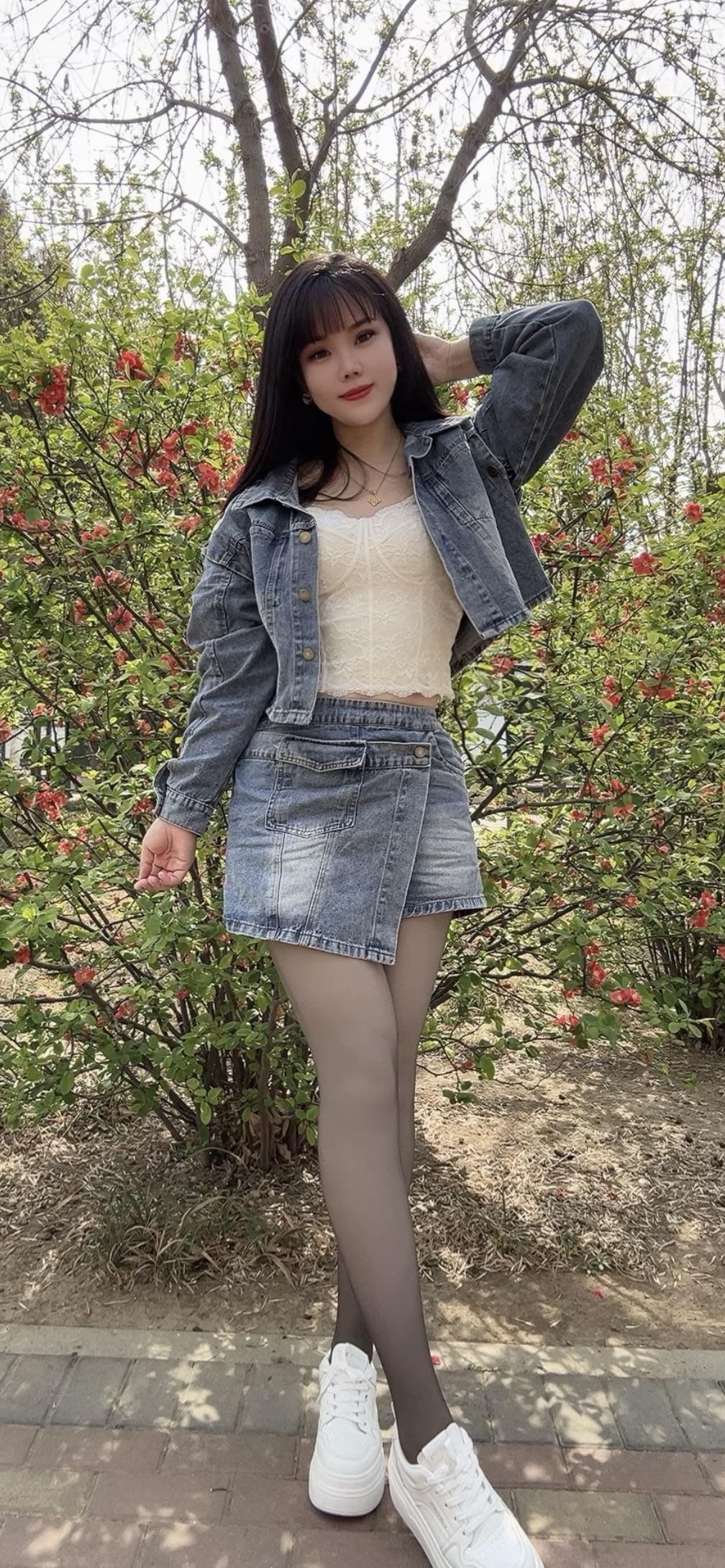 春日穿搭指南:牛仔短裙+白色运动鞋,活力满满!🌸👗👟高腰牛仔裙穿搭 简约穿搭牛仔裙