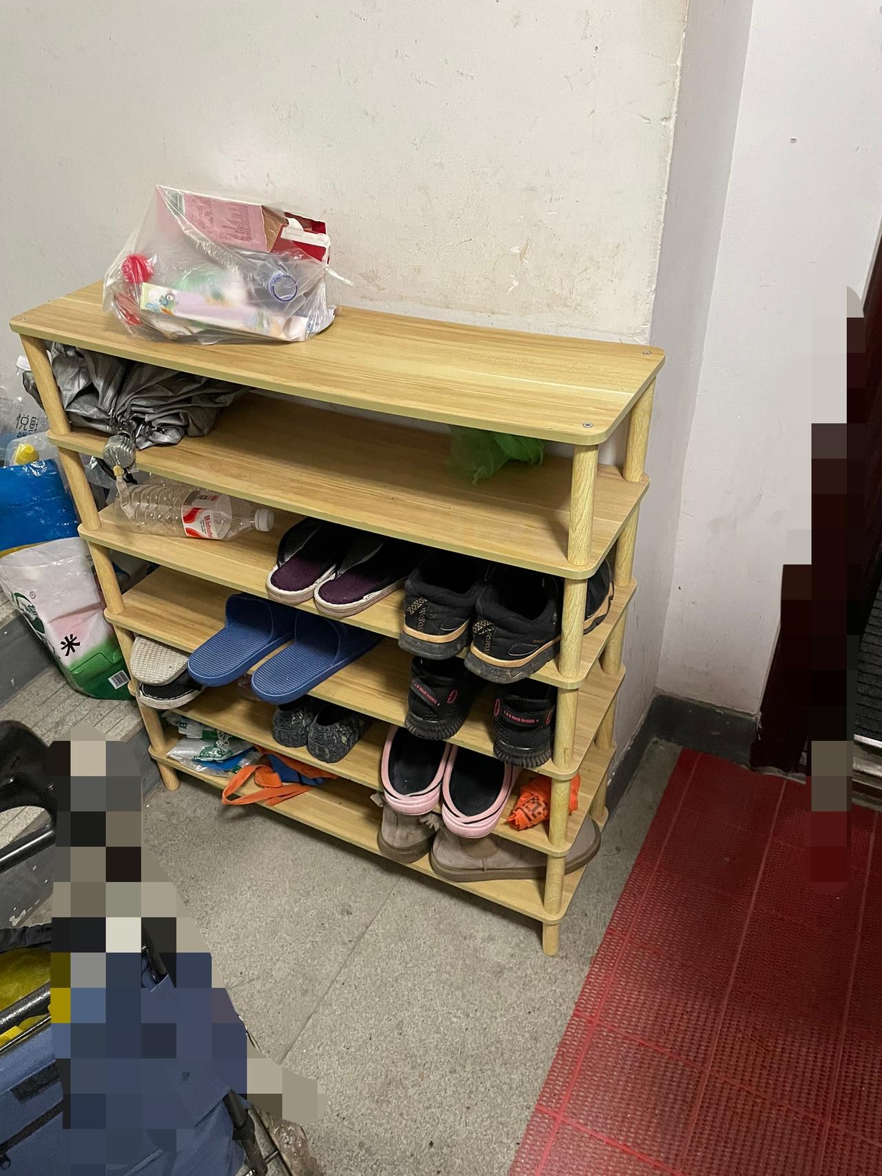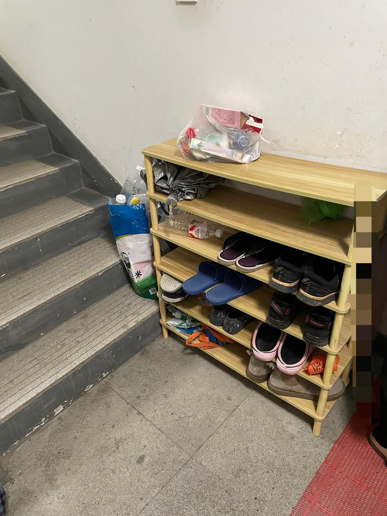 刚刚我上去看了看,鞋柜还在他们家门口的楼道放着,臭气熏天,破烂不堪。
