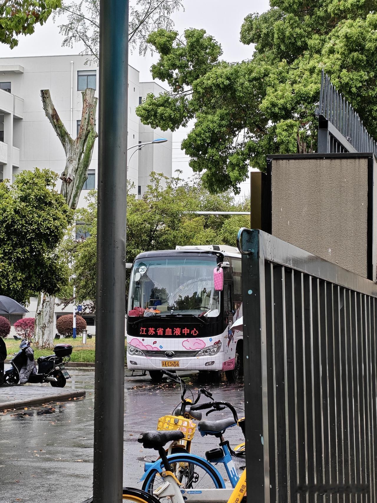 血液中心的献血车最近来的有点频繁,一周最少一次,冒雨也要来,真是敬业。