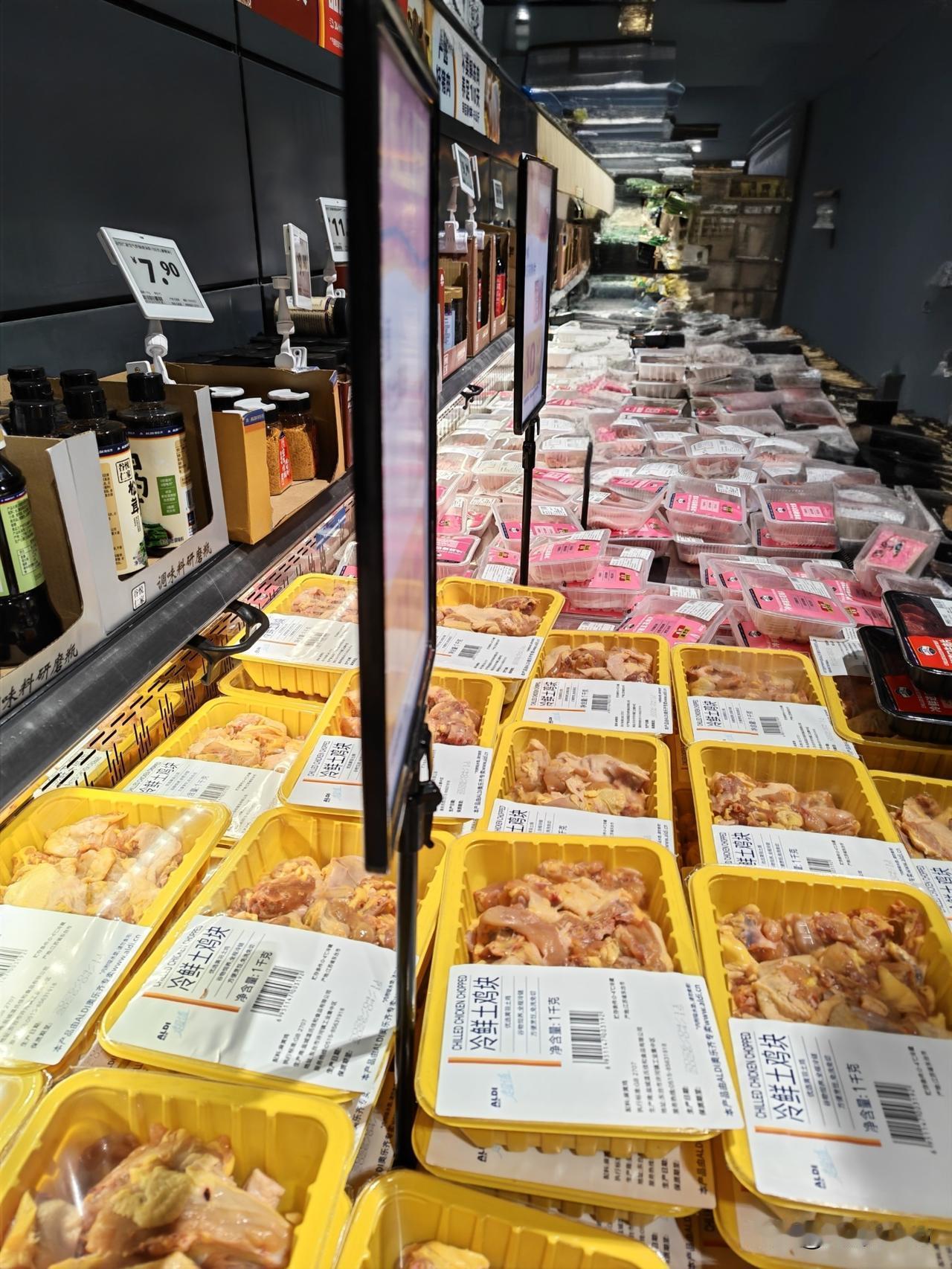 也许是周末,超市里的人流量还可以的,商品价格和苏果、大润发都差不多,鸡蛋17元一板30个,五花肉11.8一斤,肋排24一斤。