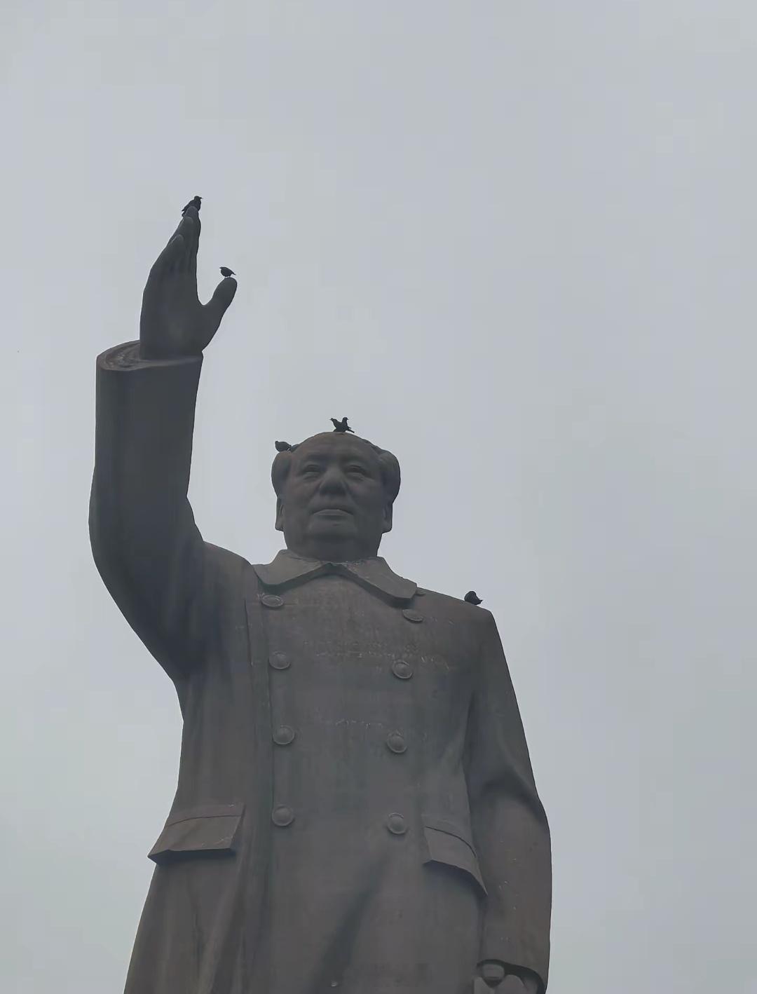 浙江大学玉泉校区内,有人拍到的一张图。教员雕像的手指上,肩膀上,头顶上,静静的立着小鸟。慈悲者的气场,连小鸟们也感到安全和自在。