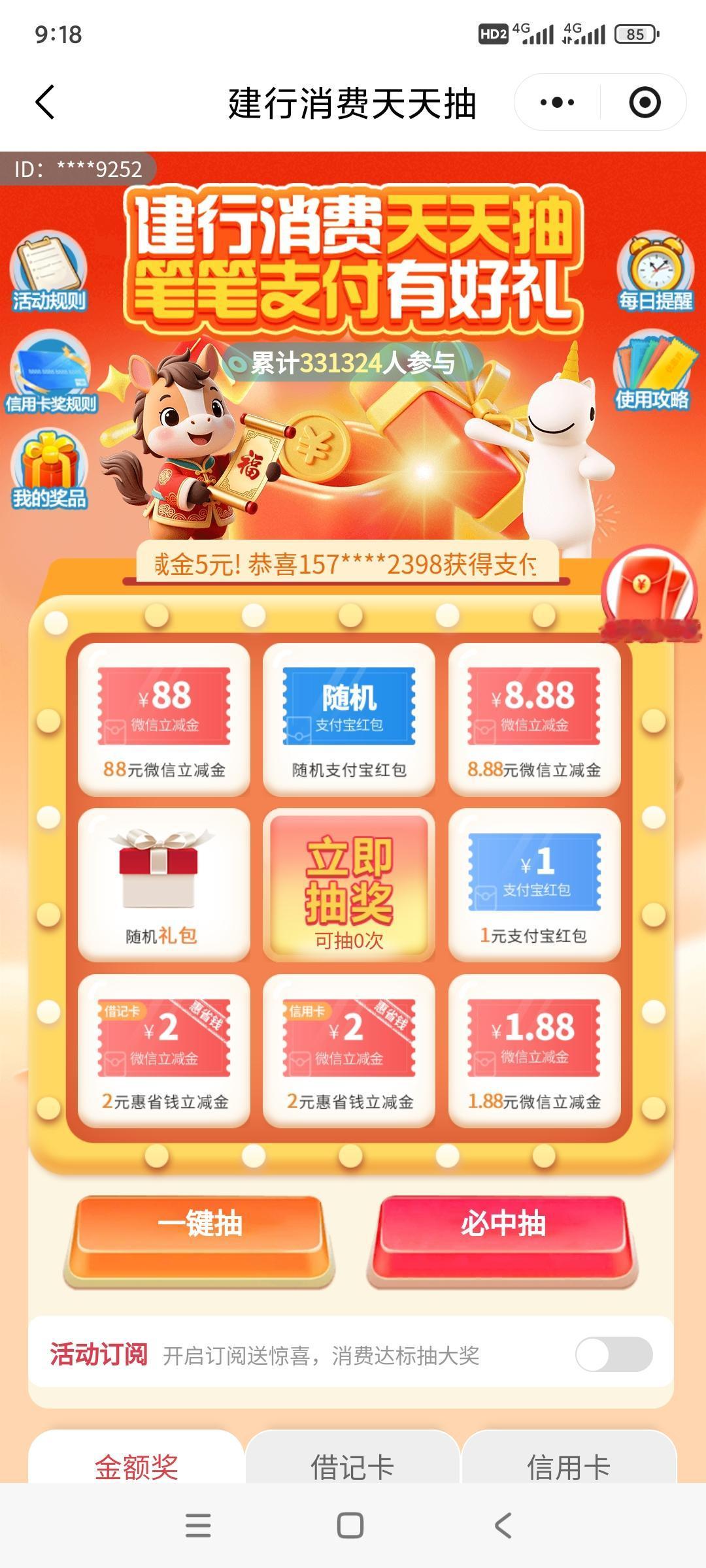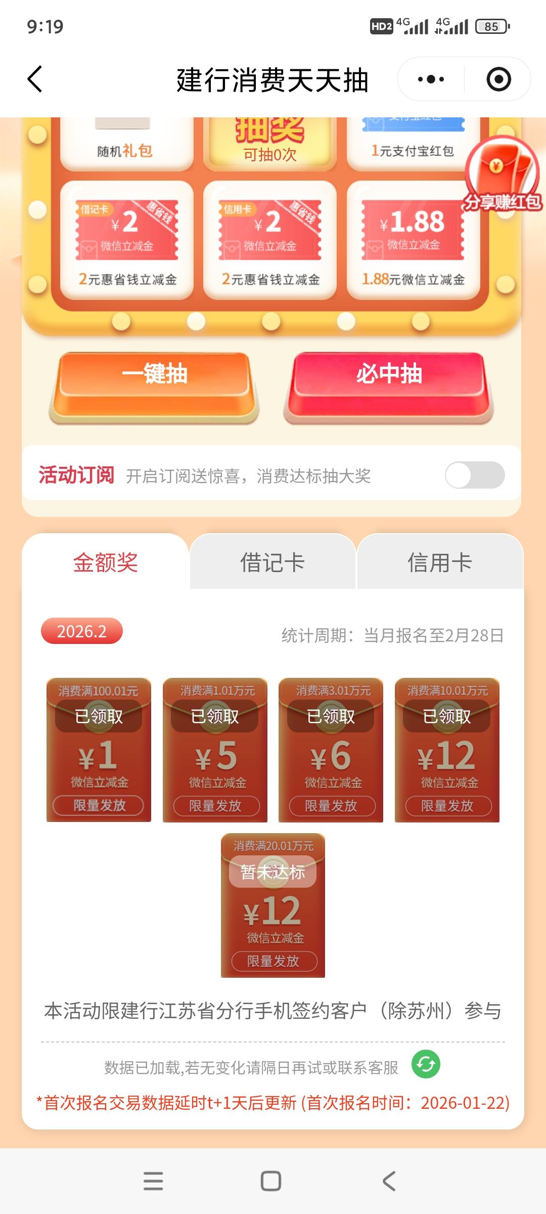 2.打开微信“建行星推官”小程序,参与礼遇江苏活动。然后点击首页的“消费天天抽”。微信零钱通每次转入转出一次,你就有了一次抽奖的机会。一般就是一分钱。但这个不重要,重要的在后面。