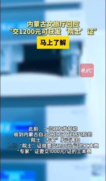 花1200块钱就能把“院士”头衔揣进兜里,这种听起来像段子一样的荒诞事,真实地发生在了内蒙古。4月15日上午,一则关于“内蒙古一文化研究院发通知称交1200元可获发‘院士’证”的报道迅速在网上炸开了锅。大家刚端起茶杯准备当个笑话看,到了当天晚上,事情就有了实质性进展——官方通报证实,这些交钱就能办的院士证已经被全部收回。