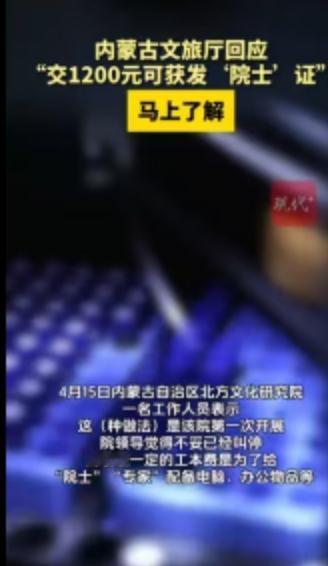 这出闹剧的主角叫内蒙古自治区北方文化研究院。这家机构不是什么野鸡草台班子,记者当天下午专门联系了它的业务主管单位内蒙古自治区文化和旅游厅。厅里的工作人员明确表态,这家研究院确实是他们厅管的社会组织。有意思的是,对于自家地盘上卖出“院士”头衔这事,文旅厅方面当时表示还不知情,承诺立刻着手去了解情况。从上午被媒体曝光,到晚上证件被火速收回,整个反应链条可谓相当迅速。