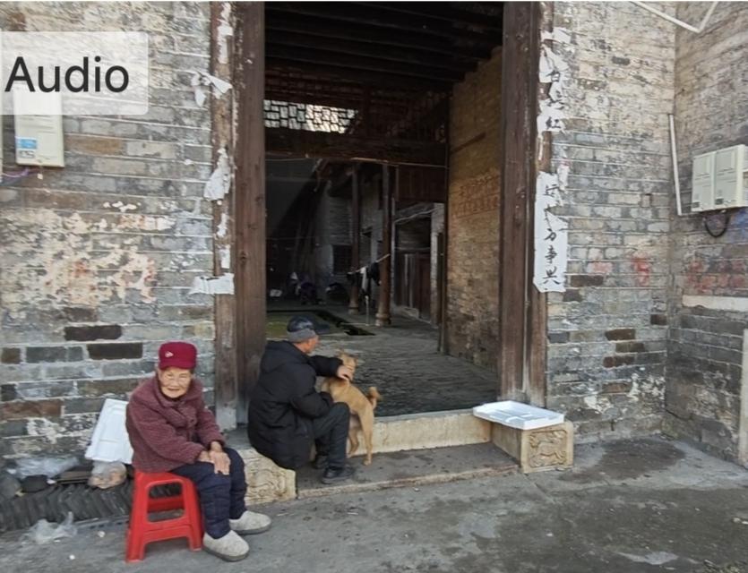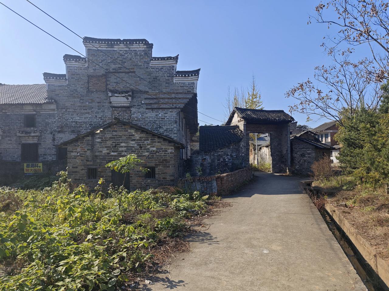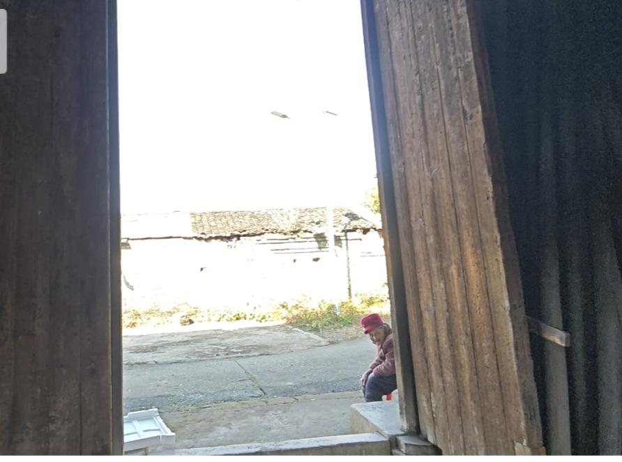 我缓缓的走进村里,古村朝门保存完好,但缺失了门扇。大门左边有一栋老屋,两位老人悠闲坐在大门口,守着伴随几代人的老屋。时光也慢了下来,一坐便是半日清闲,一生都在村里。老了便与老屋、老树、老时光相伴,安稳又从容。