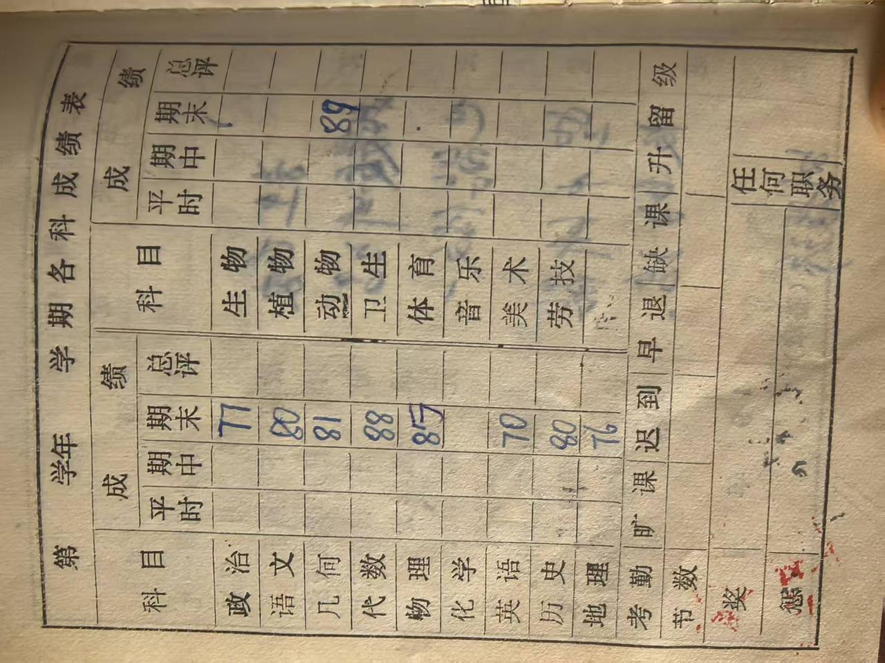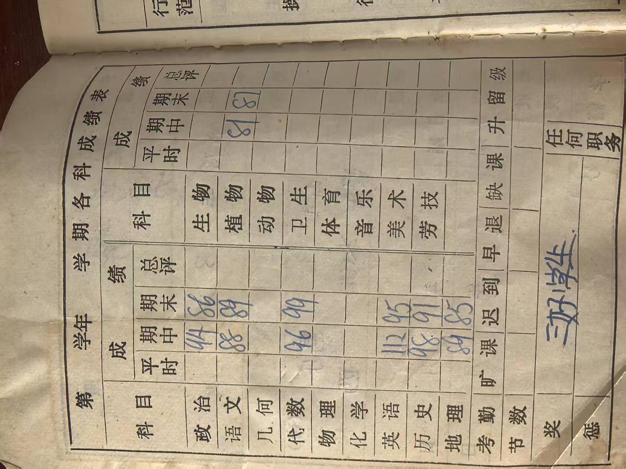 70后的数学,不光分代数和几何,几何还分立体几何和解析几何。生物学还分植物学、动物学、生理卫生。这是我30多年前的毕业证上的成绩。如下图片。