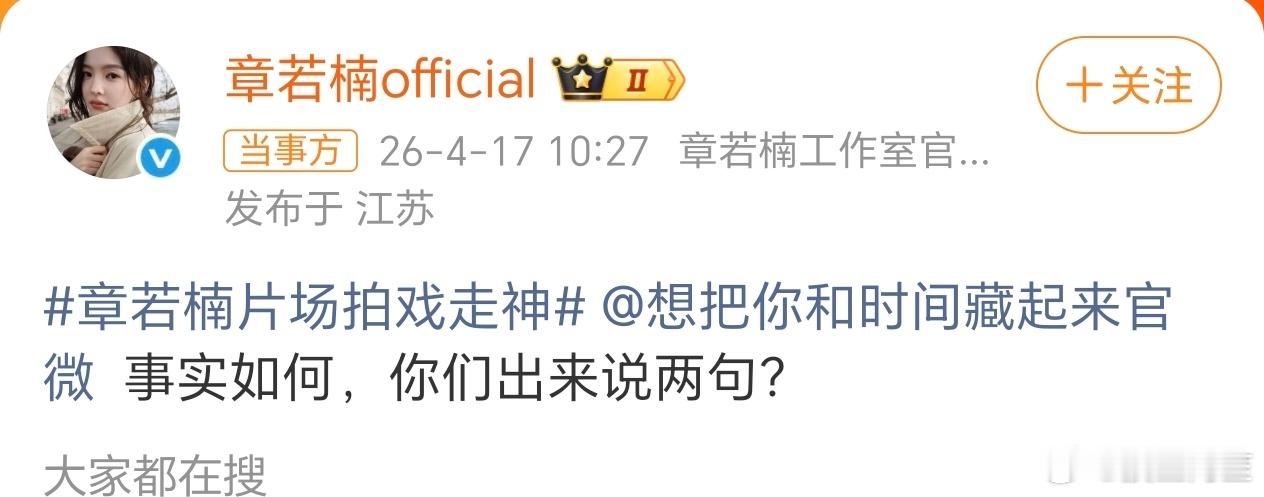 章若楠工作室对于网传的这些内容直接艾特剧组开撕了。章若楠片场拍戏走神