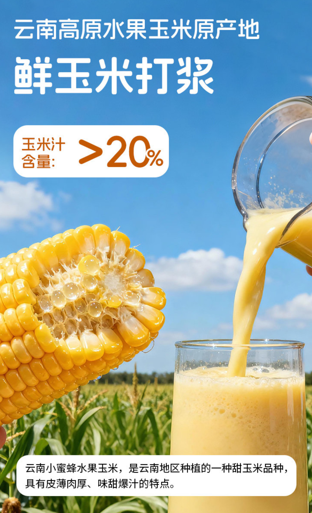 ✅ 真材实料鲜玉米原浆玉米汁打底,看得见整粒玉米,无香精、无防腐剂,天然谷物香