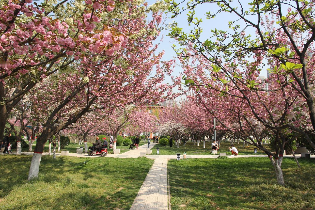 地铁8号线寒窑站B1口步行200多米。樱花长廊沿着碧波湖水,粉樱倒映在湖面,还有唐风古建点缀,像是闯进了江南水乡,全天开放随便逛。