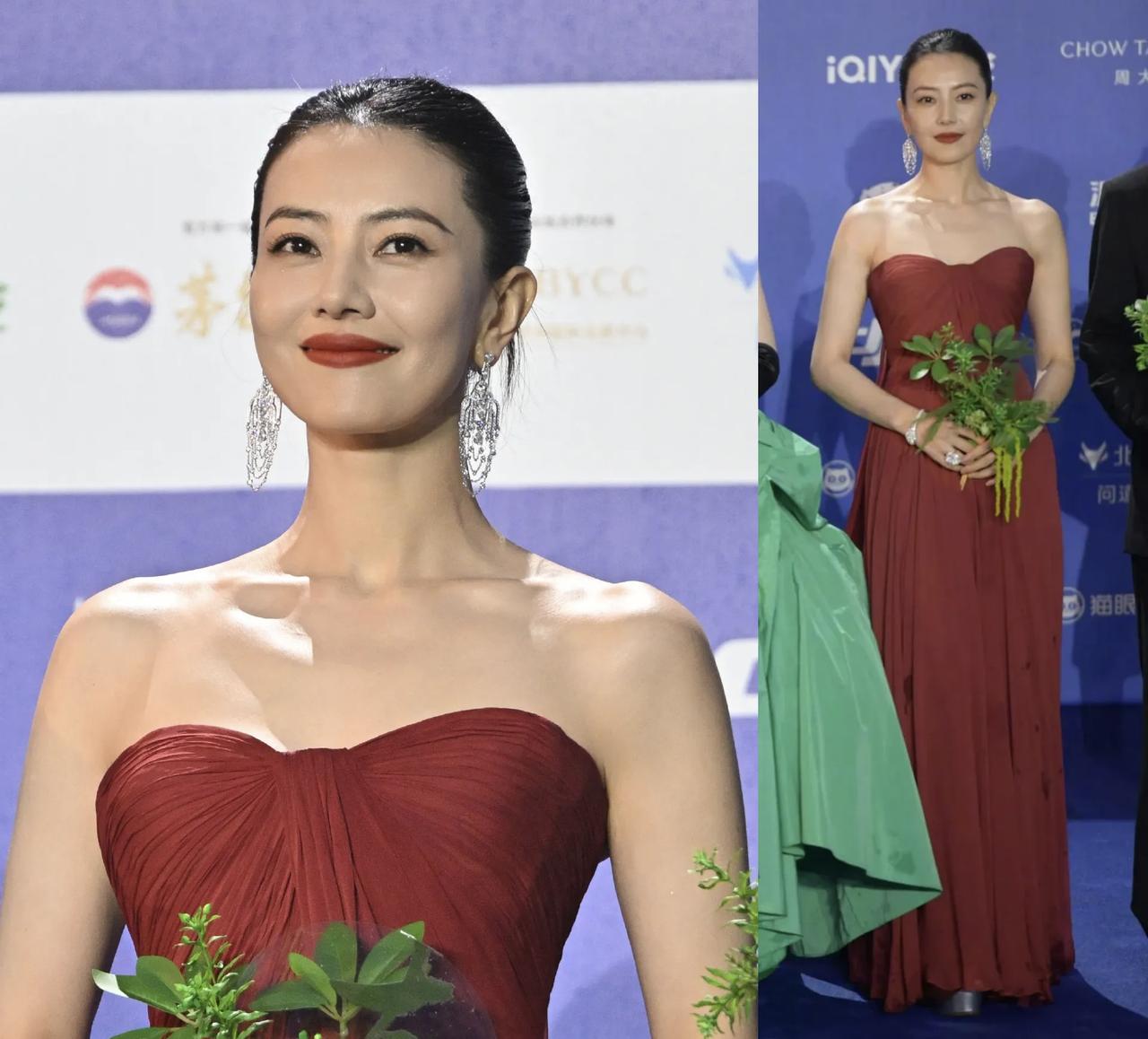 张天爱大裙绿裙子把人家高圆圆都挡住了,像芭蕉叶。高圆圆的这个红色有点暗,口红颜色也很腹黑的感觉。