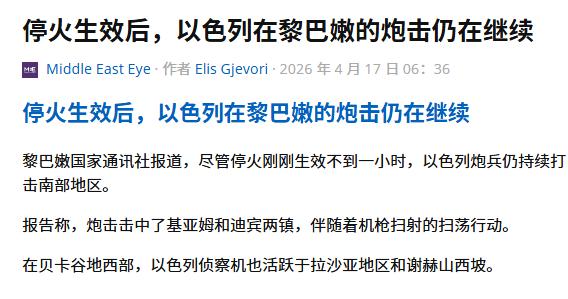 对以色列来说,这10天是给美国面子,也是在试探黎巴嫩政府和真主党的底线。炮击基亚姆和迪宾,其实就是一种“武装巡逻”——我打你几炮,看你还手不还手。你若还手,我就说你破坏停火;你若不还手,那我就顺势把“停火期间也能炮击”变成一种新常态。