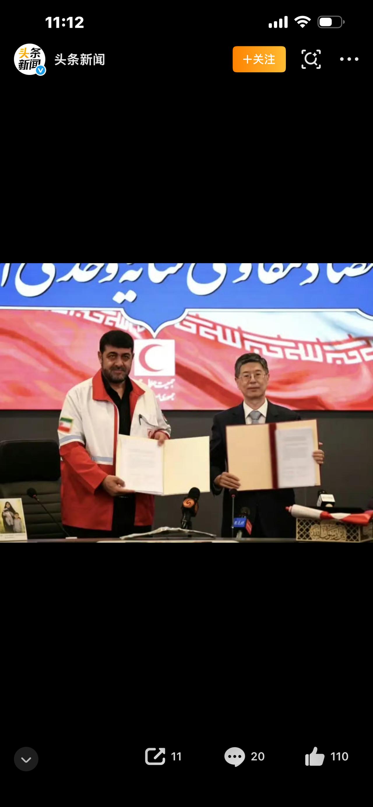 当地时间4月15日,中国驻伊朗大使与伊朗红新月会完成交接——