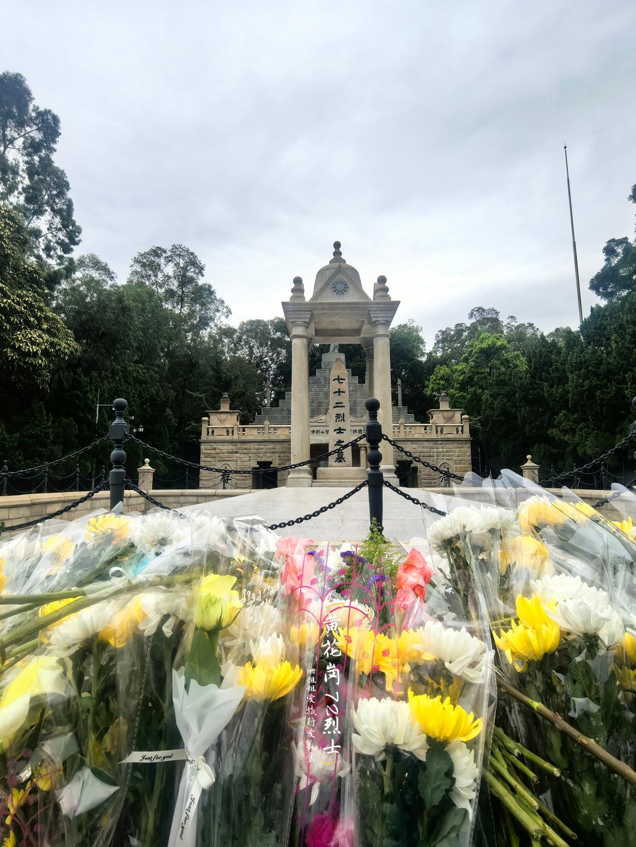 圆形墓冢,墓碑镌刻“七十二烈士之墓”。可在此鞠躬、献花,寄托哀思。