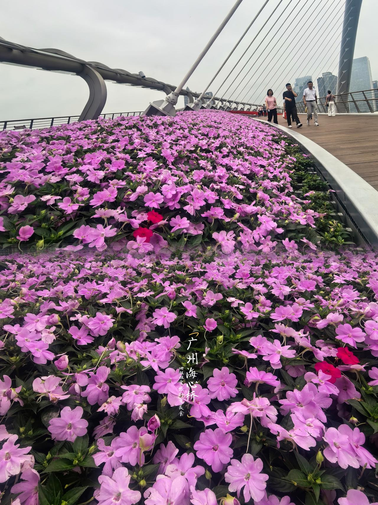就在海心桥北岸下桥处,春日花海直接封神💐