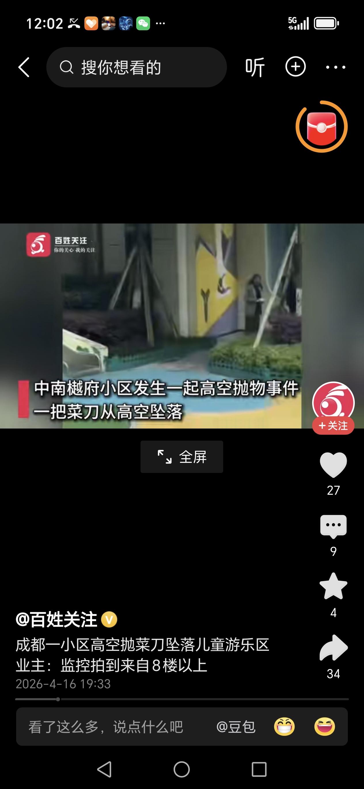 惊魂一刻!成都小区天降菜刀砸中滑梯,监控拍下全过程:谁在拿生命开玩笑?