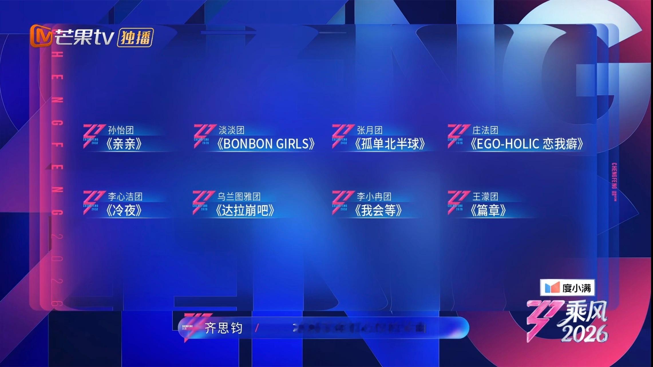 乘风二公真人秀《乘风2026》二公选曲公布,最期待乌兰图雅团的《达拉崩吧》、张月团的《孤单北半球》以及李心洁团的《冷夜》~