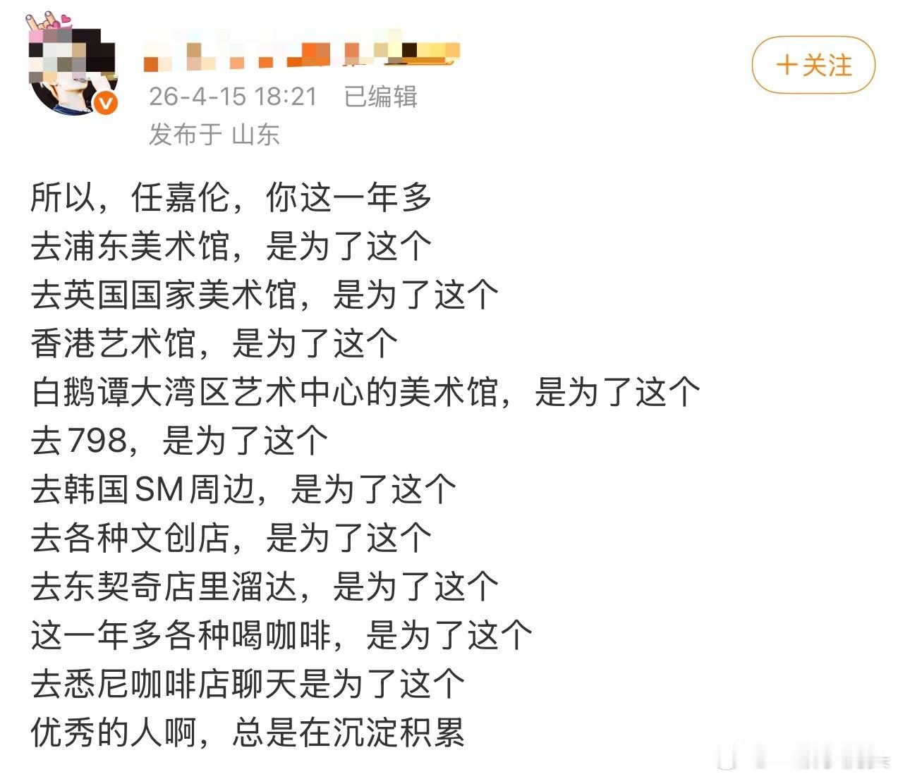 一切都是有迹可循,难怪任嘉伦这一年多抽空看各种艺术馆美术馆咖啡厅,都是为了给粉丝