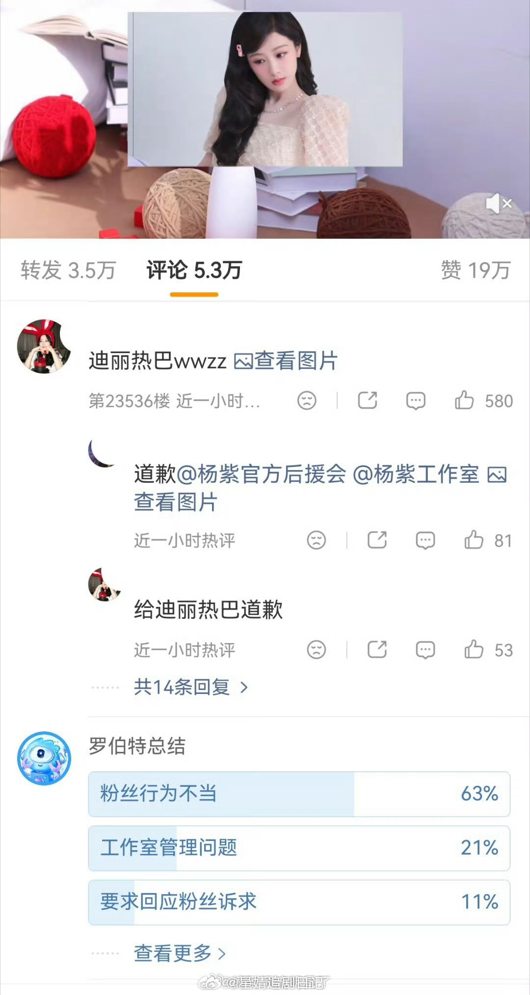 面对杨紫后援会和迪丽热巴近期的争议,杨紫工作室上线后换了头像~之前紫粉还是前排,现在热巴粉拿下前排,要解释了