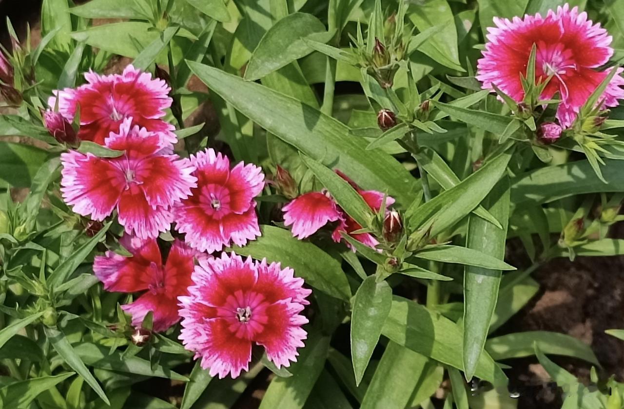 去年春,我在庭院中栽种了一株石竹,冬天也没有往屋里搬,也没怎么浇水和管护,随意放置院中,现在重新散枝,开出鲜艳的石竹花。